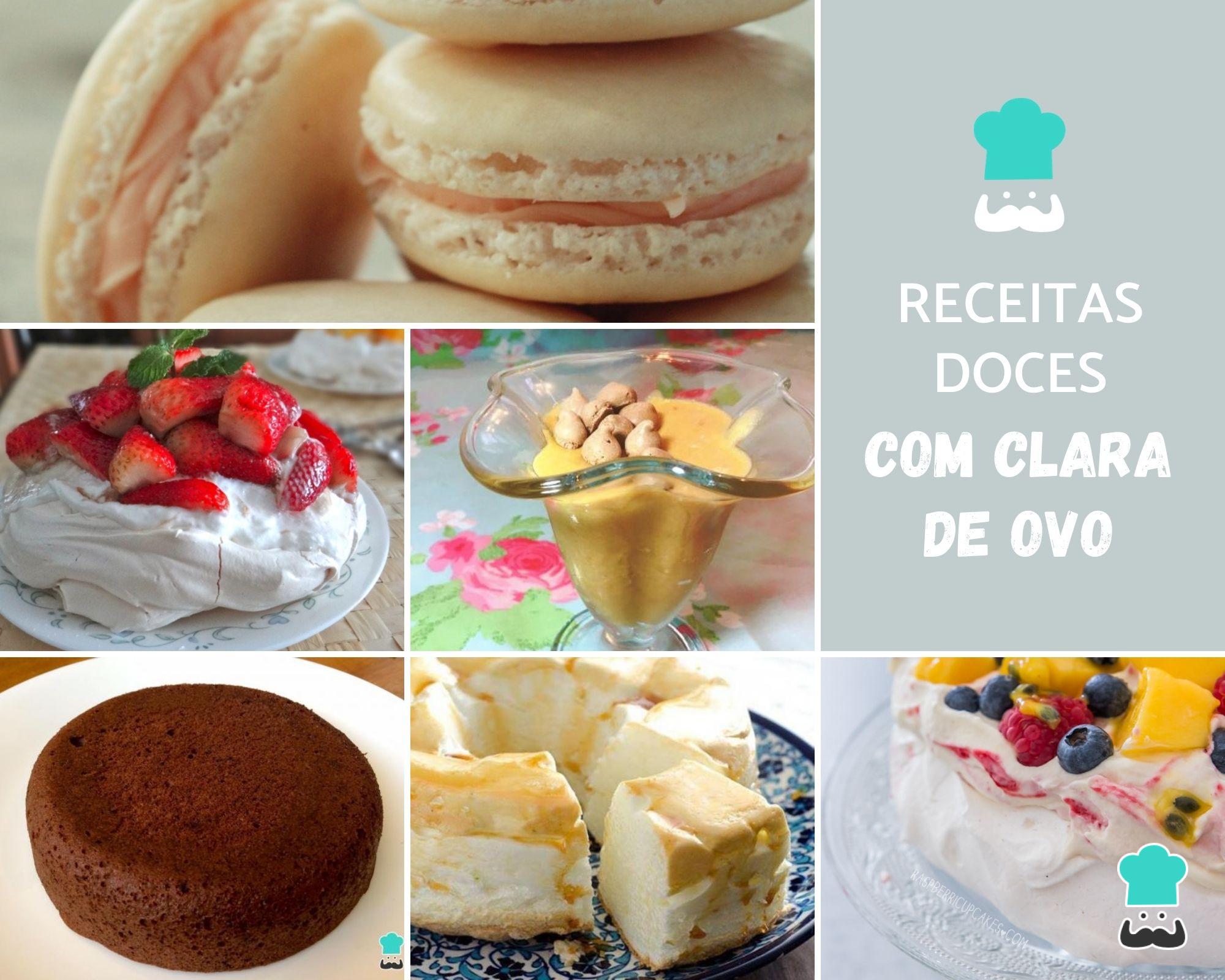 - Pudim de claras (molotof): preparado com apenas clara de ovo, açúcar e caramelo, esta sobremesa de claras de ovo fica bem leve e gostosa! Opcionalmente pode ser completada com molho de gemas;