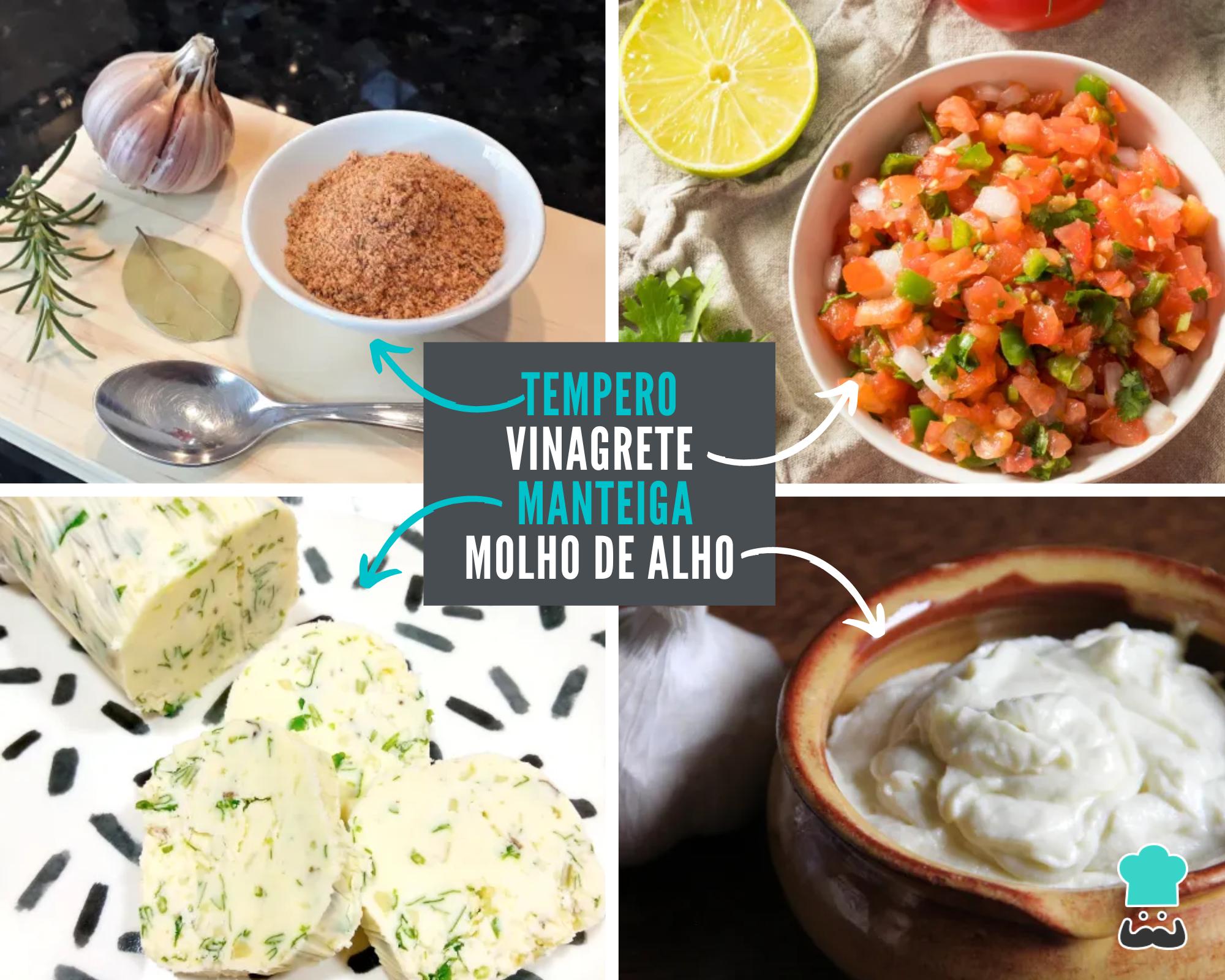 - Azeite e vinagre: a combinação de azeite e vinagre é perfeita para deixar a carne macia no ponto certo e ainda com um sabor especial. Para isso, deixe as carnes marinando por pelo menos 2 horas antes de ir para grelha.