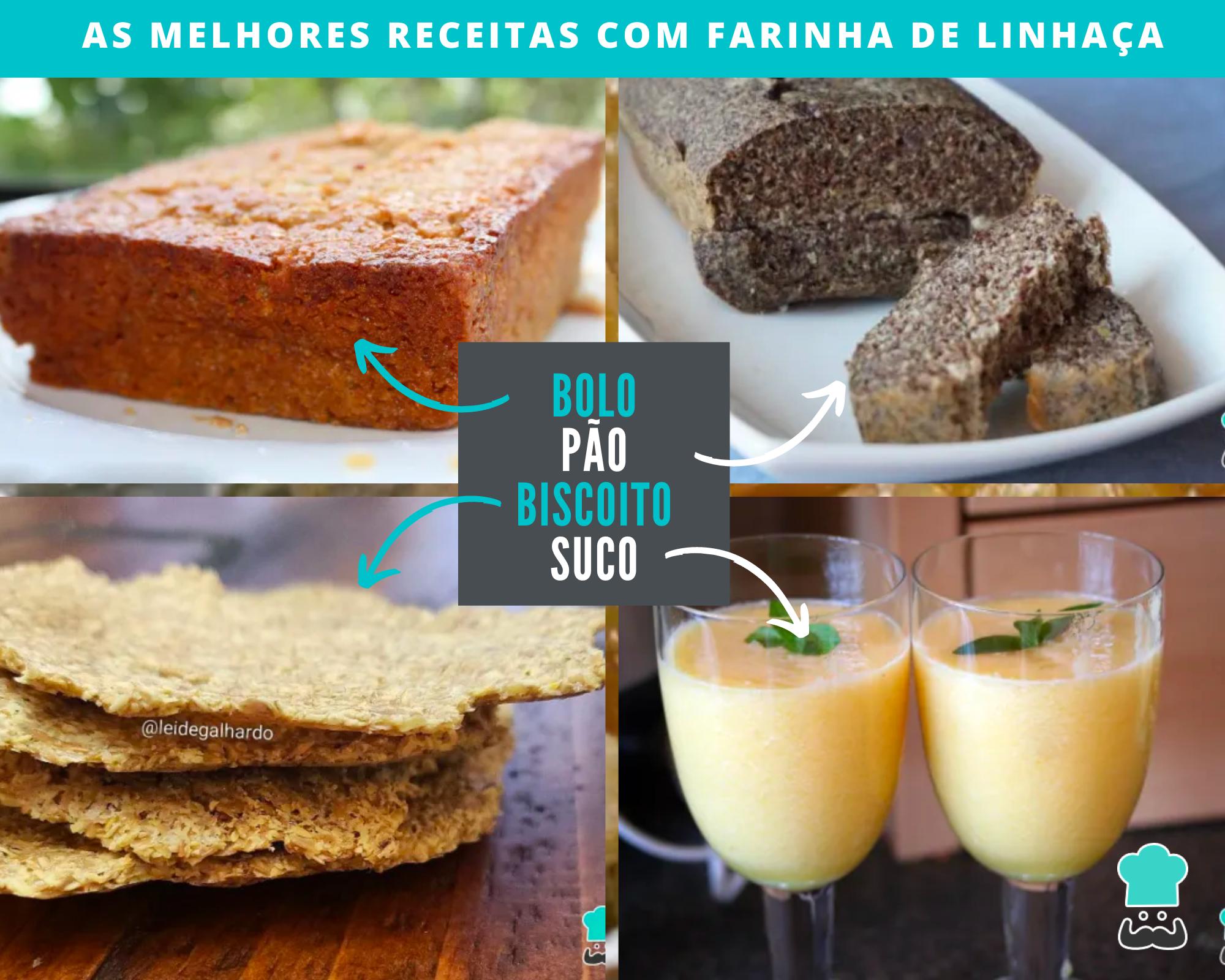 - Receita de Bolo de farinha de linhaça e aveia: que tal um bolo com farinha de linhaça low carb para garantir um café da manhã ou lanche saudável? Além de ser sem glúten, esta receita também é sem lactose e sem açúcar, e o resultado é incrível!