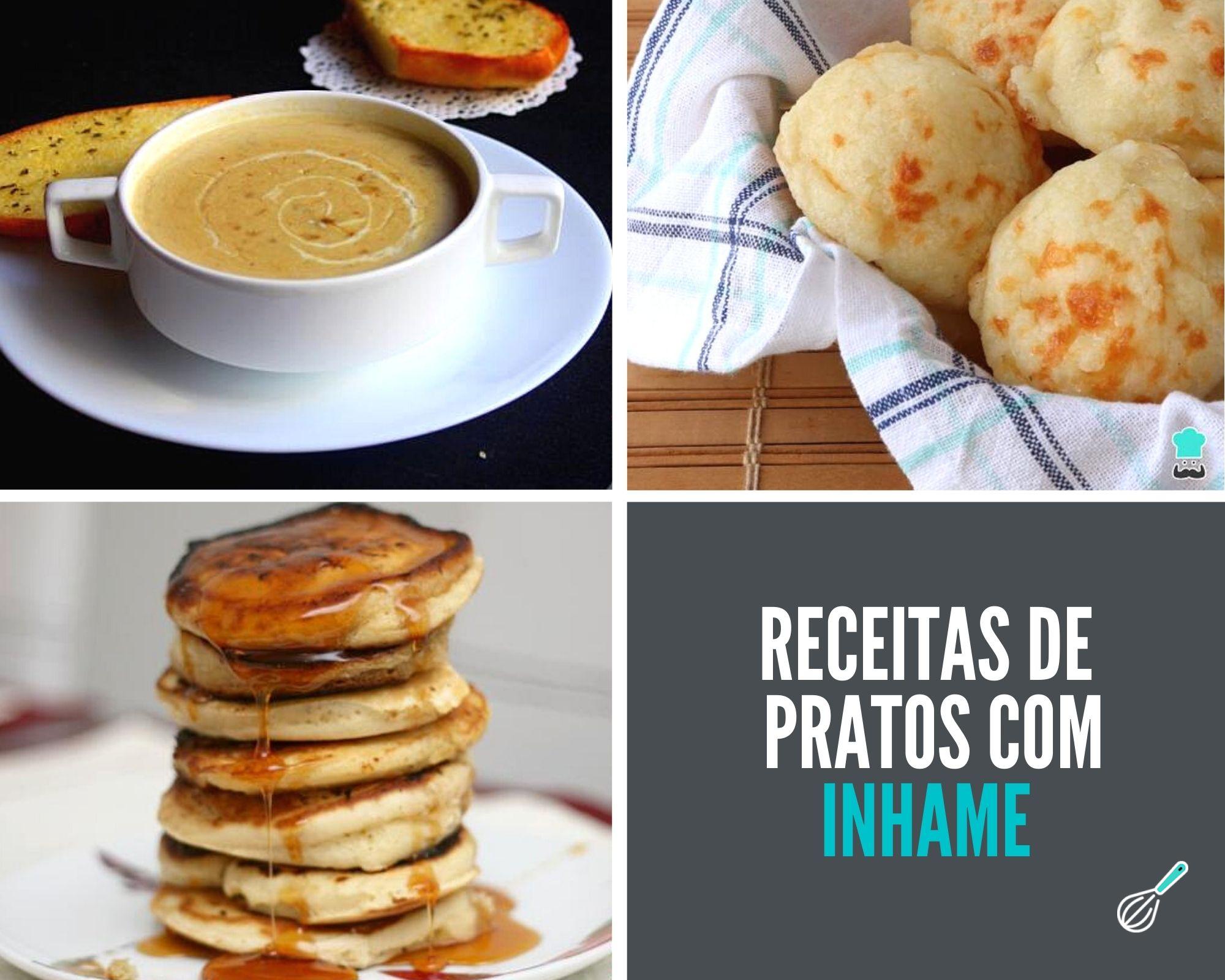 - Receita de Nhoque de inhame: fazer um de nhoque de inhame é boa ideia para variar nas receitas de inhame e diversificar seu cardápio semanal. Essa receitinha você prepara bem facilmente com apenas 4 ingredientes: inhame, farinha de trigo, ovo e queijo parmesão.