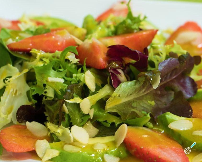 Em qualquer dia de festa não pode faltar uma saladinha leve e fresca para servir como entrada ou acompanhamento da refeição. Se você está procurando uma salada vegana de Natal prepare nossa sugestão de salada de alface com abacate, morango, amêndoas e um tempero bem simples e gostoso.