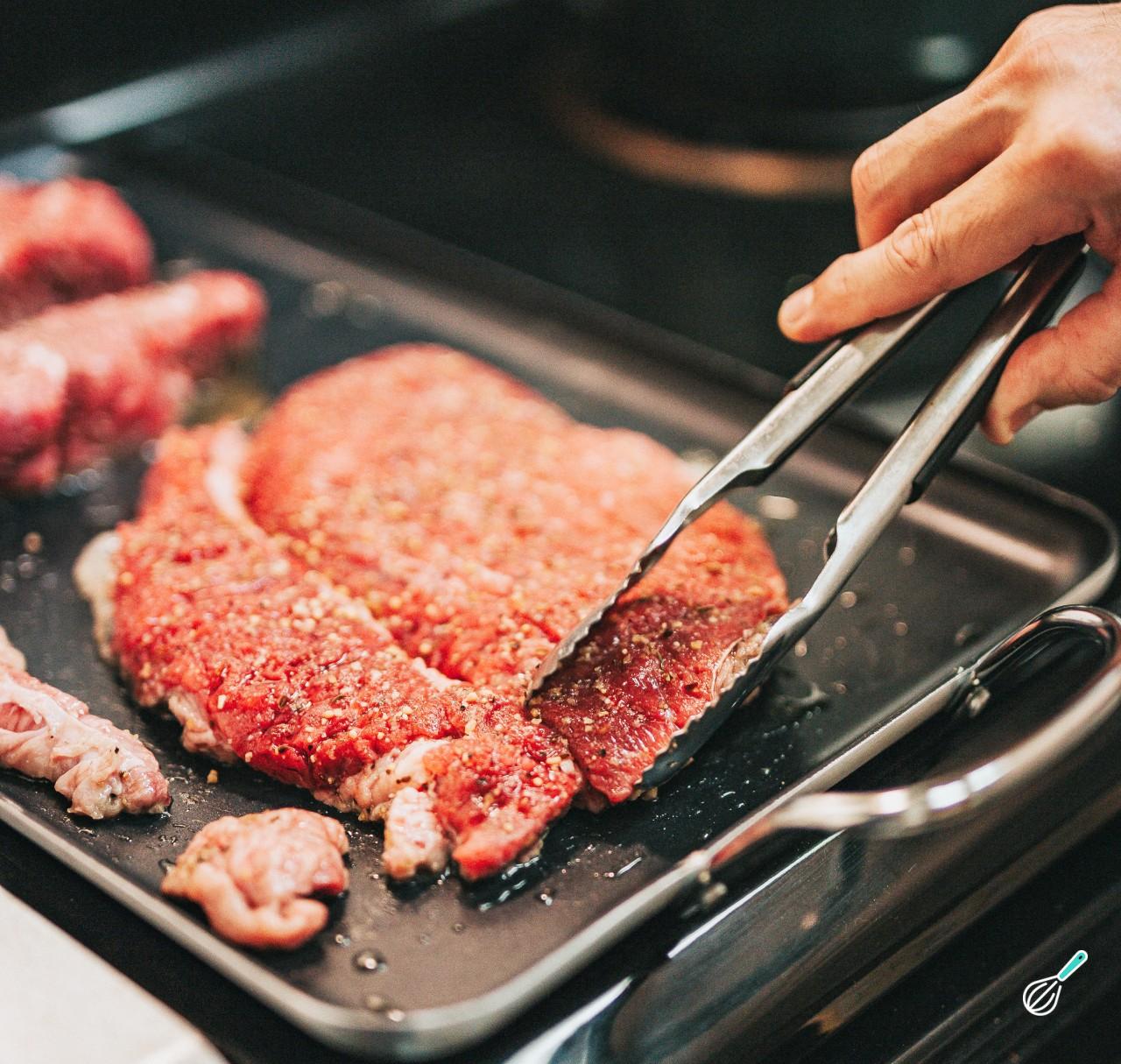 - Virar muitas vezes a carne ao fritar: quando se mexe muitas vezes a carne ou o frango, ele acaba ficando sem sabor. O ideal é deixar primeiro a frigideira aquecer, com um fio de óleo ou azeite, e esperar ele fritar sem mudar de lado até que as bordas comecem a cozinhar..