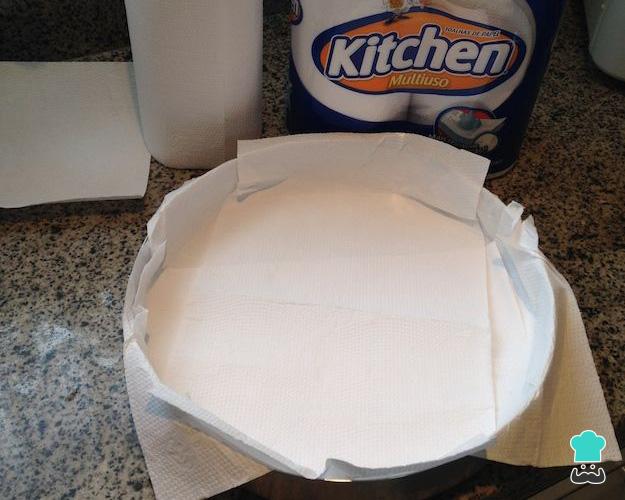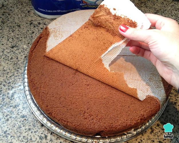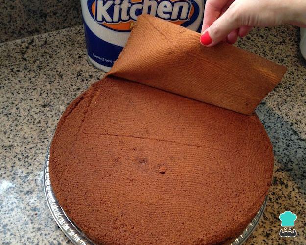 Conselhos: Evite usar um papel toalha muito fino, para que não rasgue no momento de desenformar o bolo.