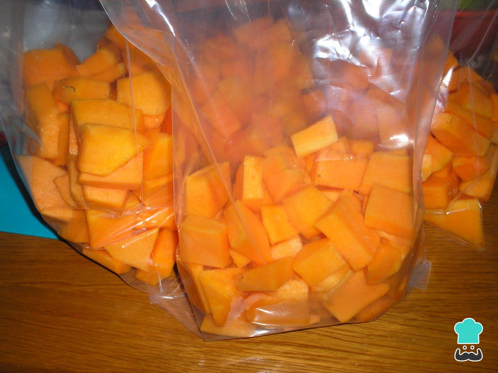 Conselhos: Pode congelar a abóbora cortada em cubos ou em purê!