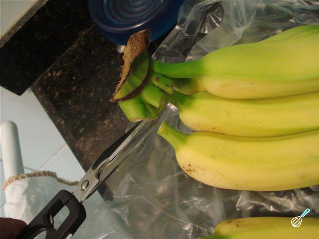 Use uma tesoura para separar cada tesoura, mantendo o pé, e a parte cortada irá secar e proteger a banana do amadurecimento prematuro.
