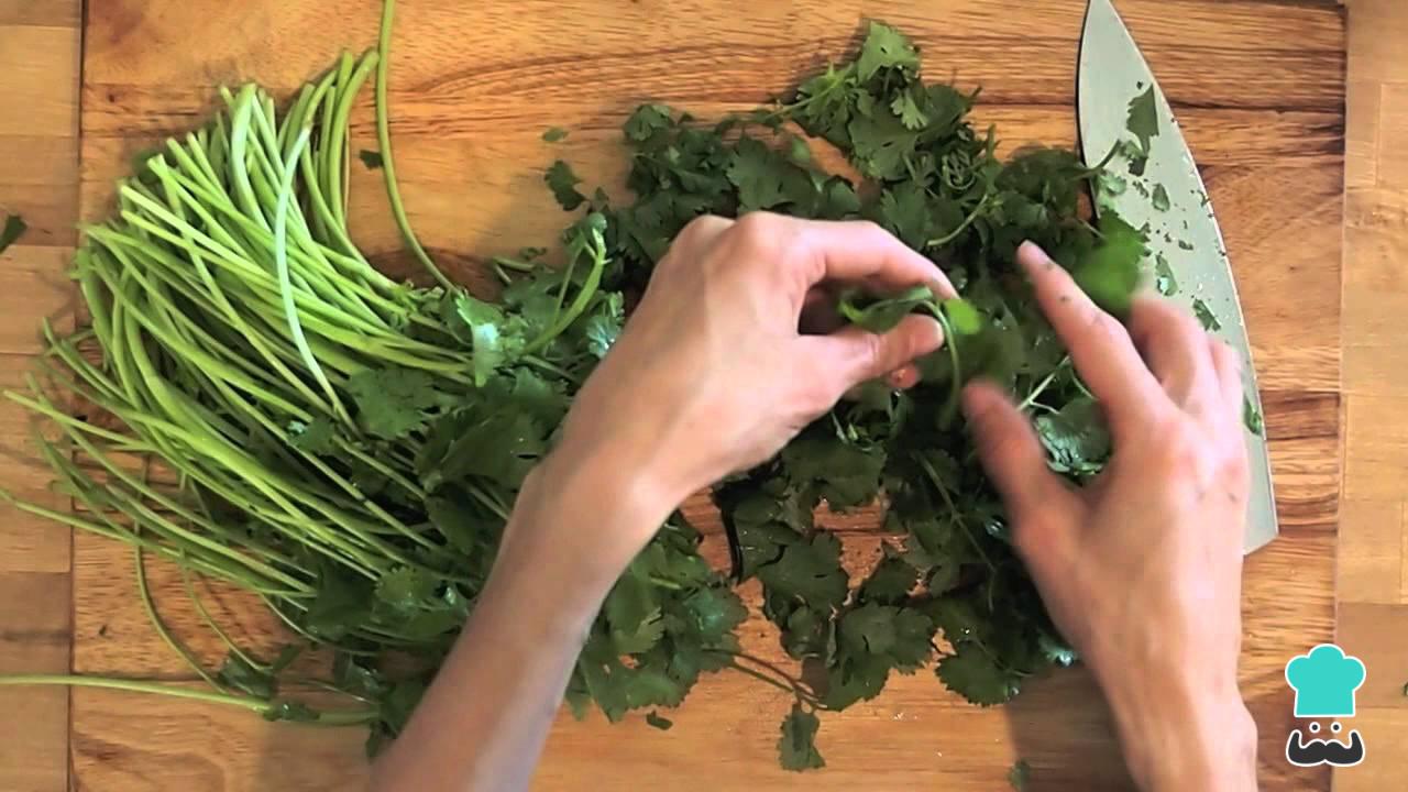 Para conservar coentro por mais tempo, comece por cortá-lo no nível onde o começam as folhas. Isso vai ajudar a preservar a folha por mais tempo.