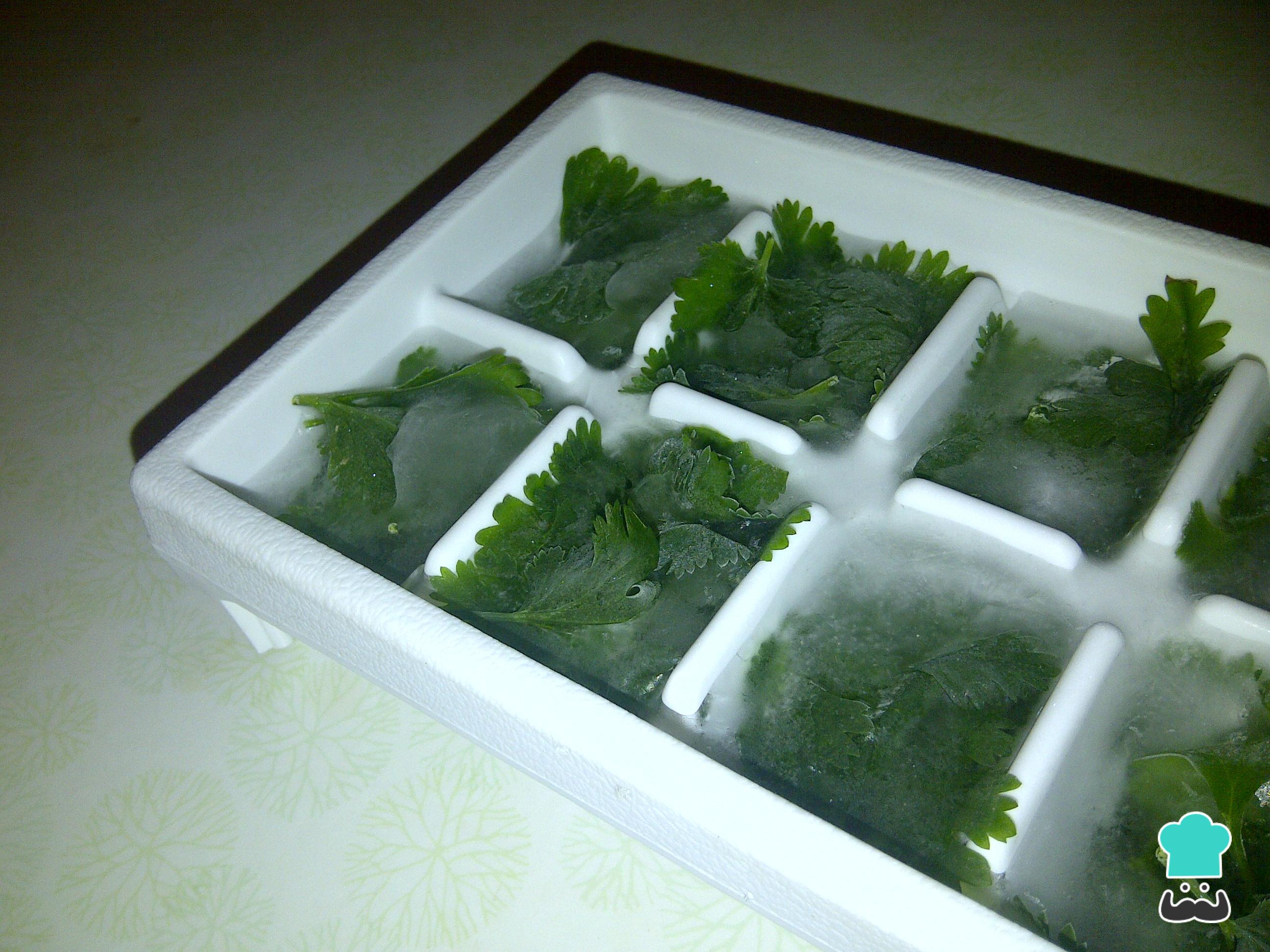 Quando quiser usar o coentro, basta remover o cubinho da forma de gelo e adicioná-lo ao cozinhado!
