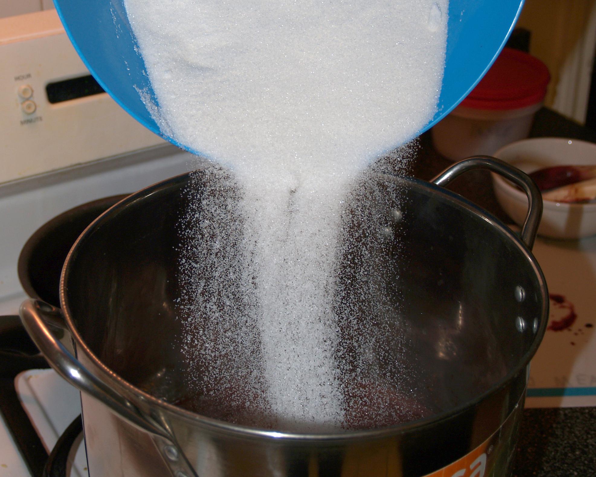 - Adicione o açúcar enquanto mexe e fique mexendo até dissolver o açúcar completamente. Deixe ferver por mais 10 minutos e desligue;