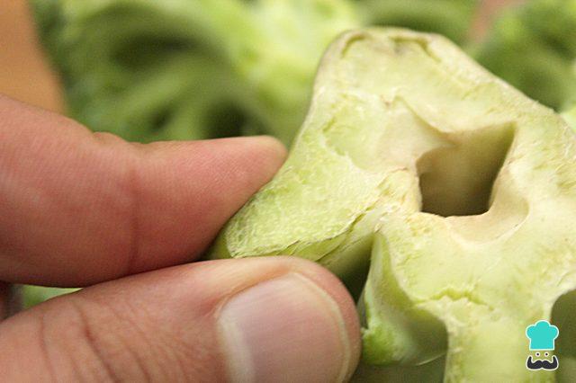 Se, pelo contrário, o talo estiver mole e oco por dentro (como na imagem), esse será um brócolis velho. Não quer dizer que seja um brócolis ruim, mas você deve cozinhá-lo o quanto antes para não apodrecer.