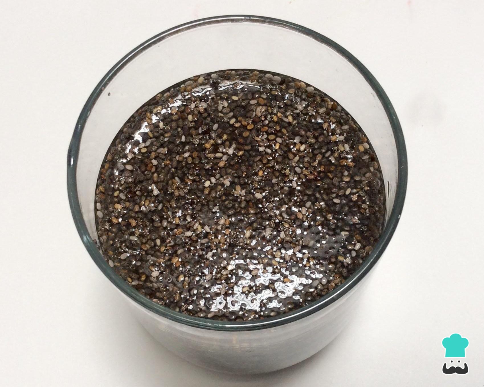 - Misture 1 colher de sopa de sementes de chia com 3 colheres de sopa de água em temperatura ambiente;