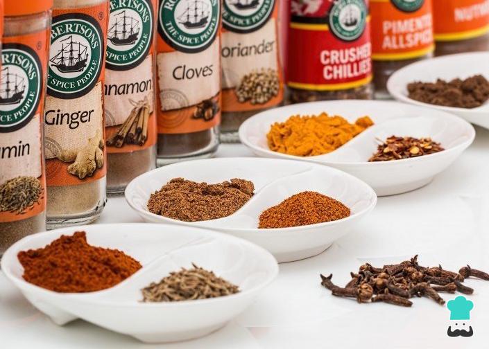 - Especiarias: gengibre, cravinho, cominho, pimentas, mostarda em pó...