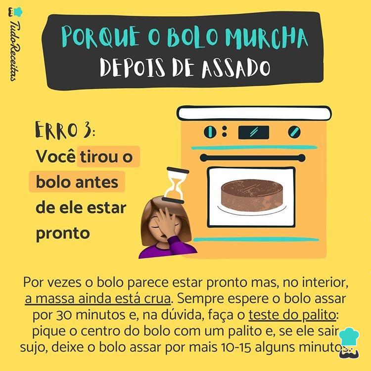 - ERRO 3: Retirar o bolo do forno antes dele estar pronto