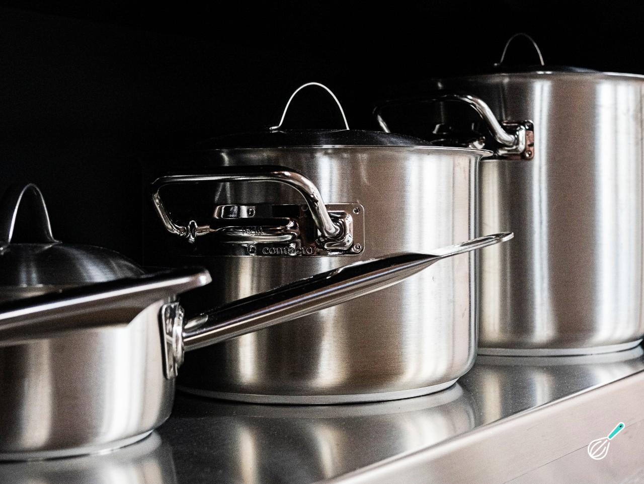 Inox: As panelas de inox são bem bonitas, não liberam materiais e aquecem o alimento de modo mais rápido, além de manter a temperatura por mais tempo, mesmo fora do fogo. No entanto, como esquentam muito e como não possuem cabo térmico, podem causar acidentes, como queimadura nas mãos. Outra desvantagem é que são mais caras e podem escurecer com o tempo.