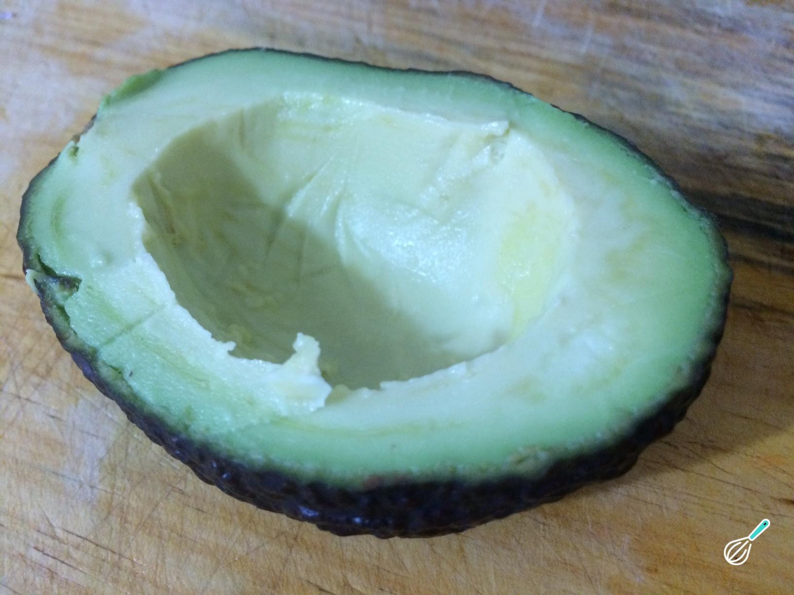 Abra o abacate, retire as sementes e tempere com sal e pimenta do reino.