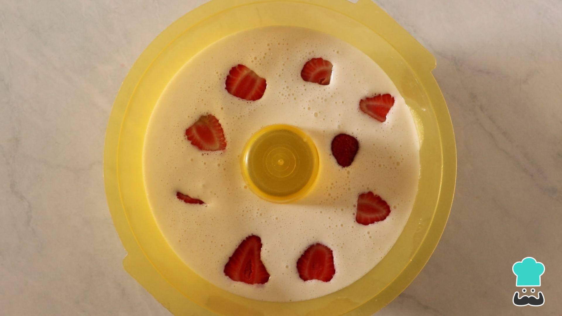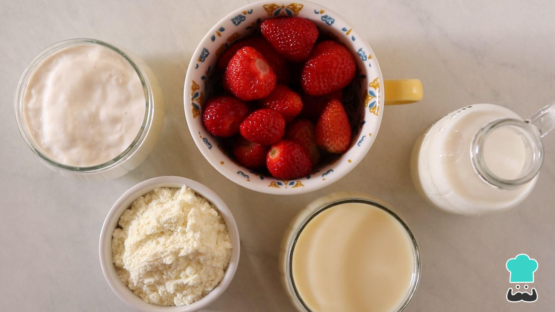 Coloque todos os ingredientes na batedeira exceto os morangos.