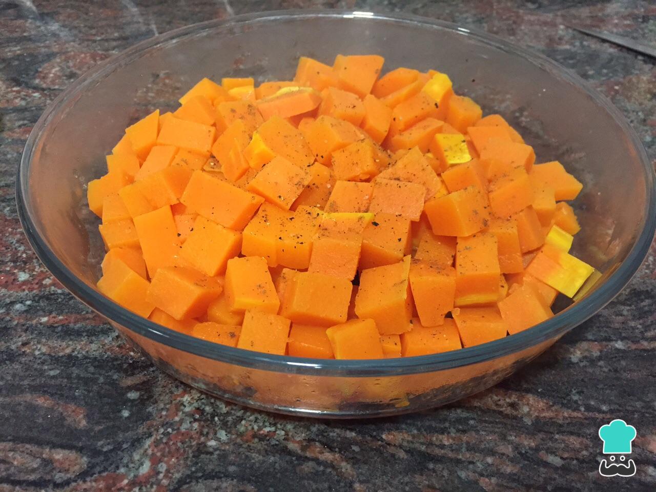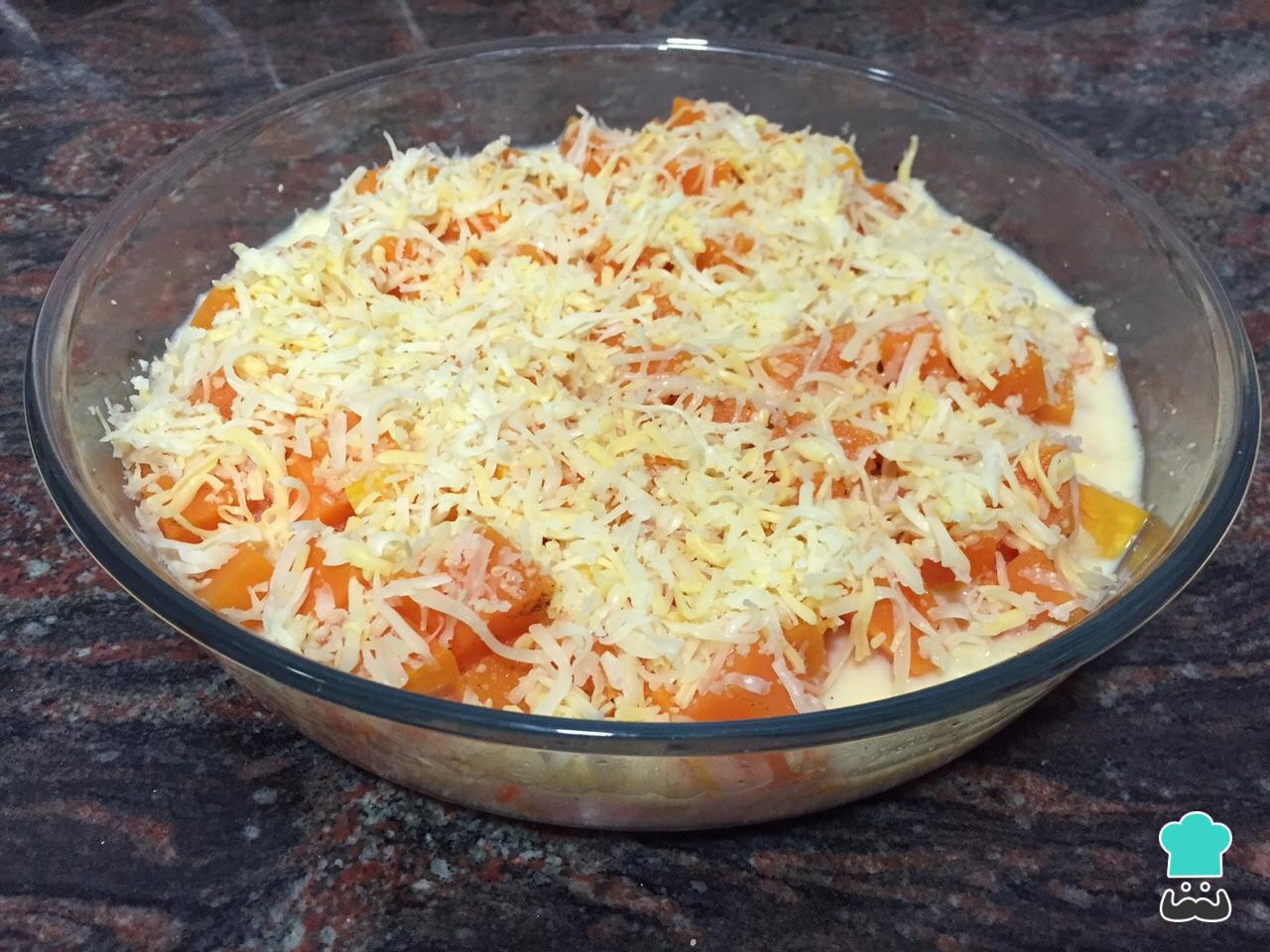 Comece por preparar os ingredientes necessários para fazer a abóbora gratinada simples.