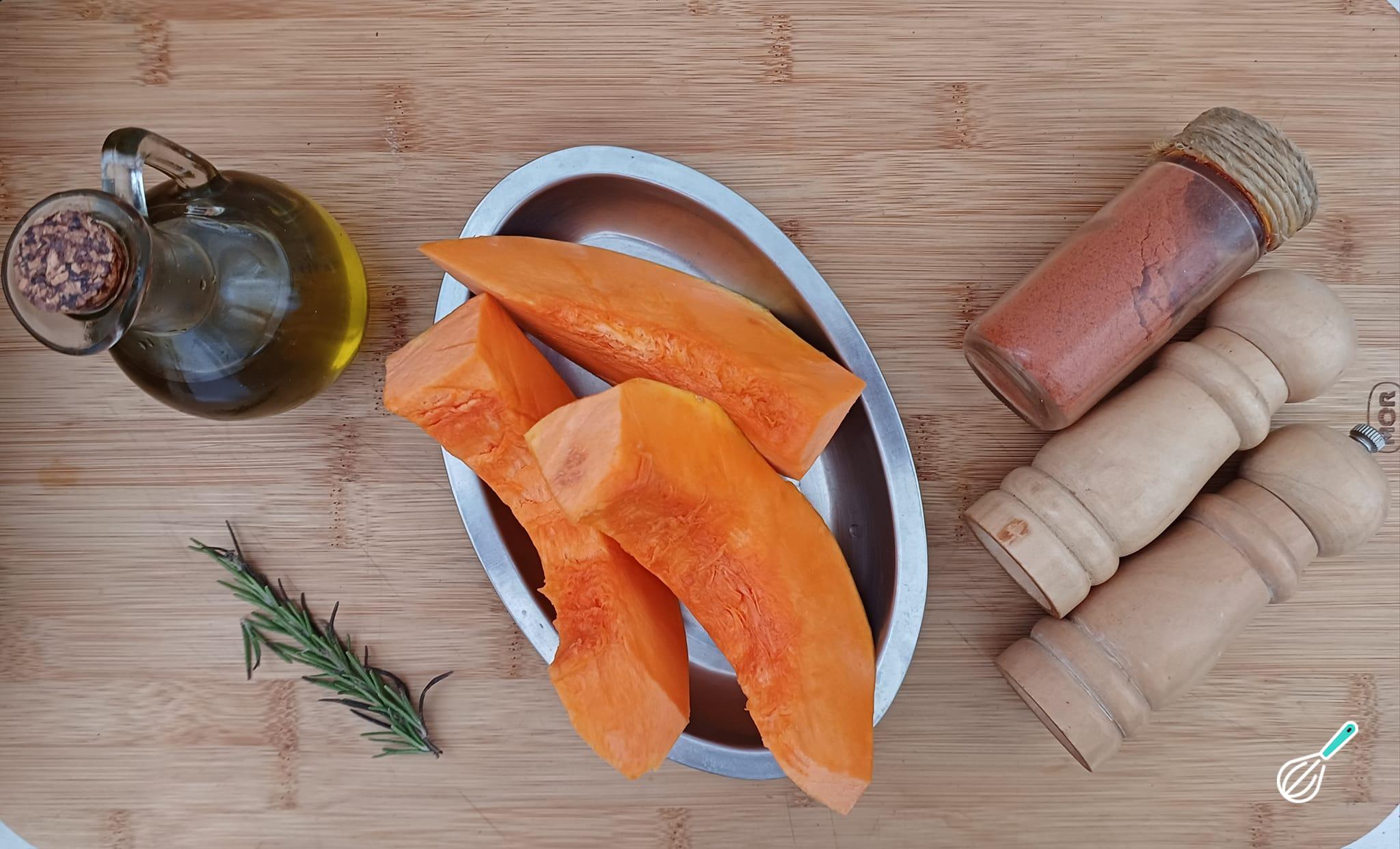 Separe os ingredientes necessários para o preparo da abóbora na air fryer.