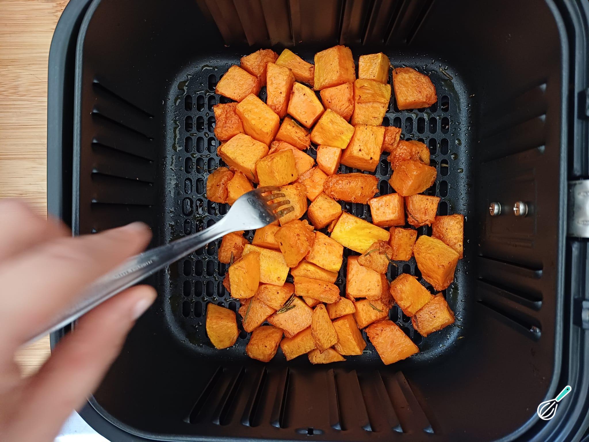 Asse a abóbora na air fryer por 8 minutos a 180 graus.