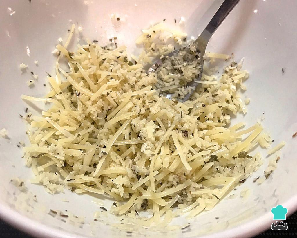 Misture os temperos desta receita de abobrinha crocante de forno: parmesão ralado, suco de limão, manjericão, alho em pó, panko, sal e pimenta.