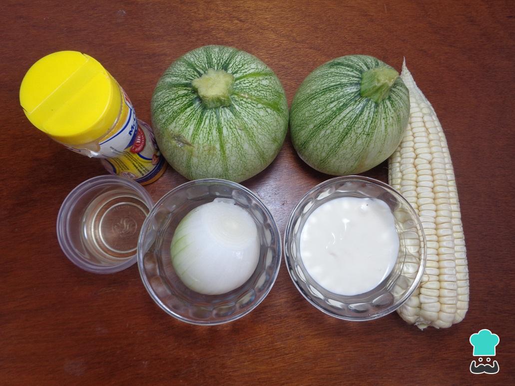 Na imagem seguinte, você pode ver os ingredientes necessários para preparar esta receita de abobrinha com creme de leite.