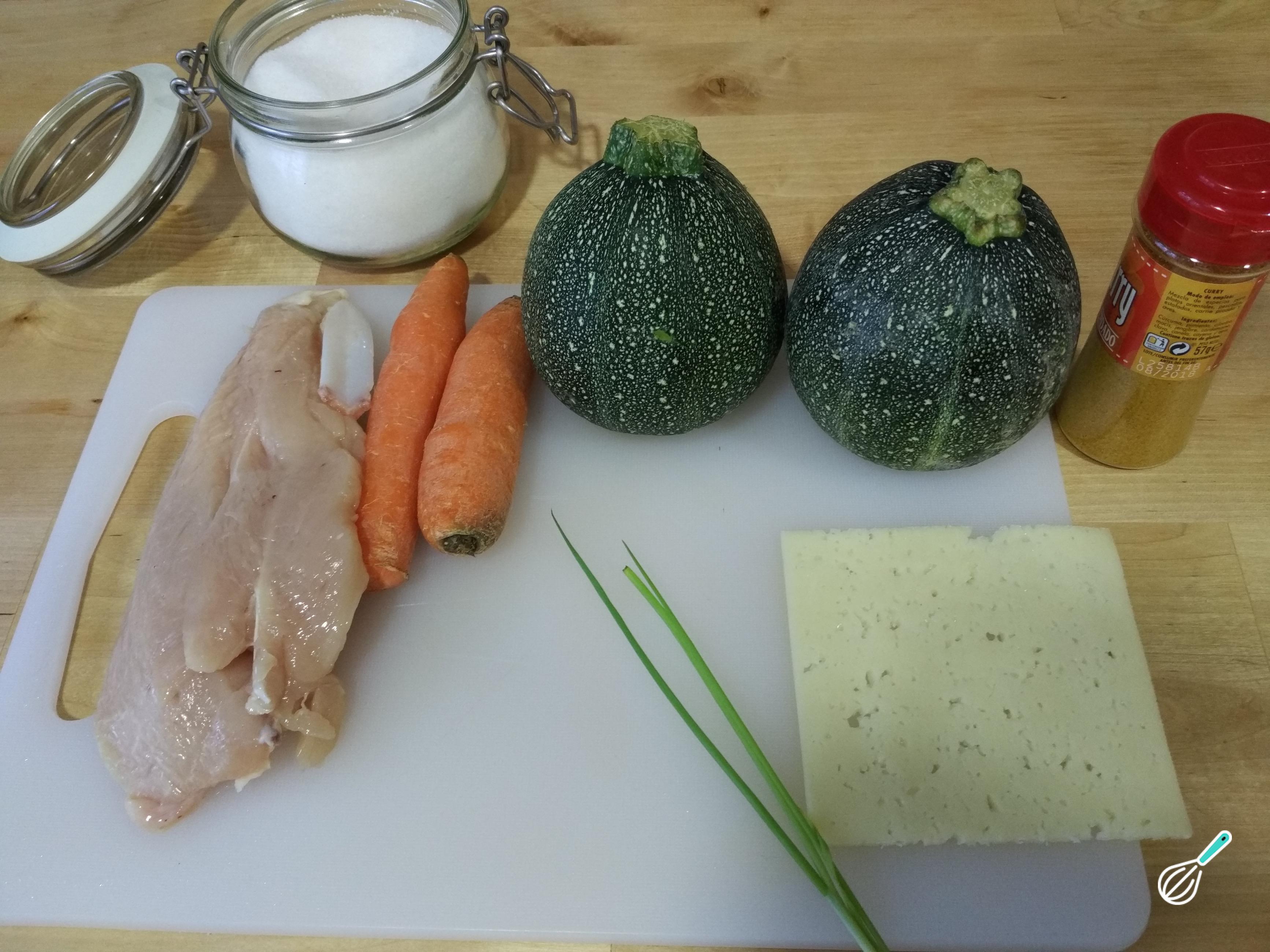 Para iniciar esta receita de abobrinha italiana recheada com frango comece por juntar todos os ingredientes necessários.