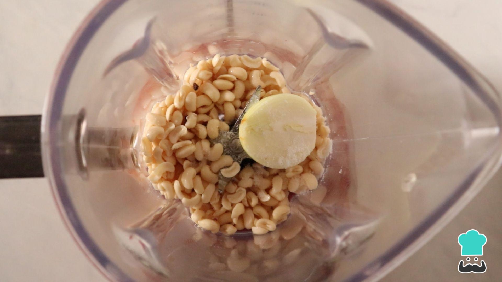 Agora é só bater no liquidificador o feijão, a cebola e sal a gosto.