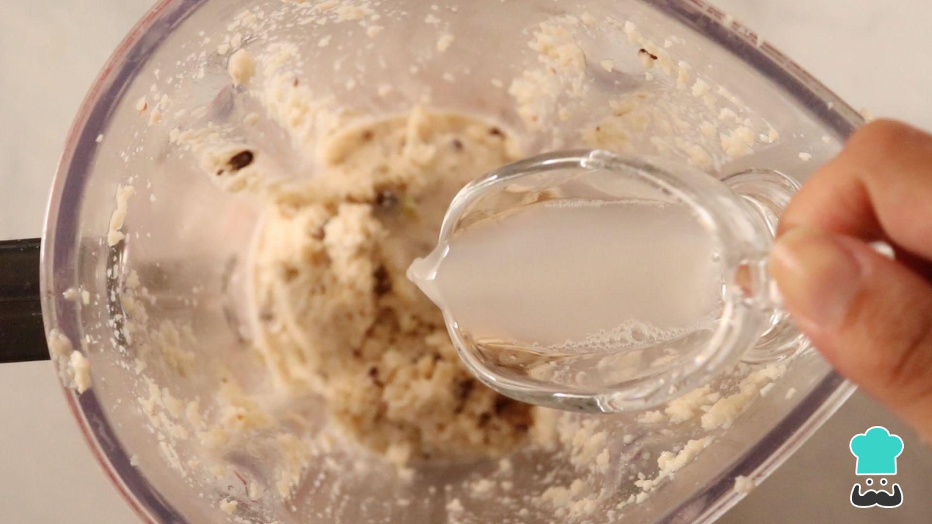 Adicione a água reservada anteriormente aos poucos e bata mais uma vez.