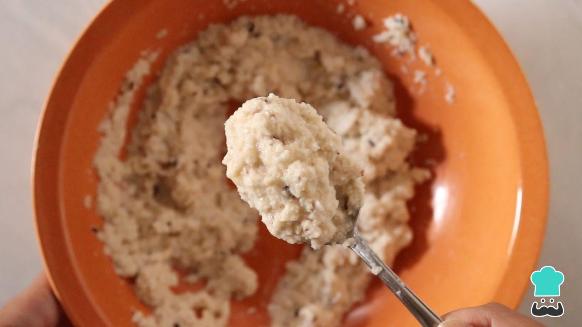 A massa tem que ficar com essa textura, cremosa mas ainda firme, então coloque a água do passo anterior aos poucos mesmo.