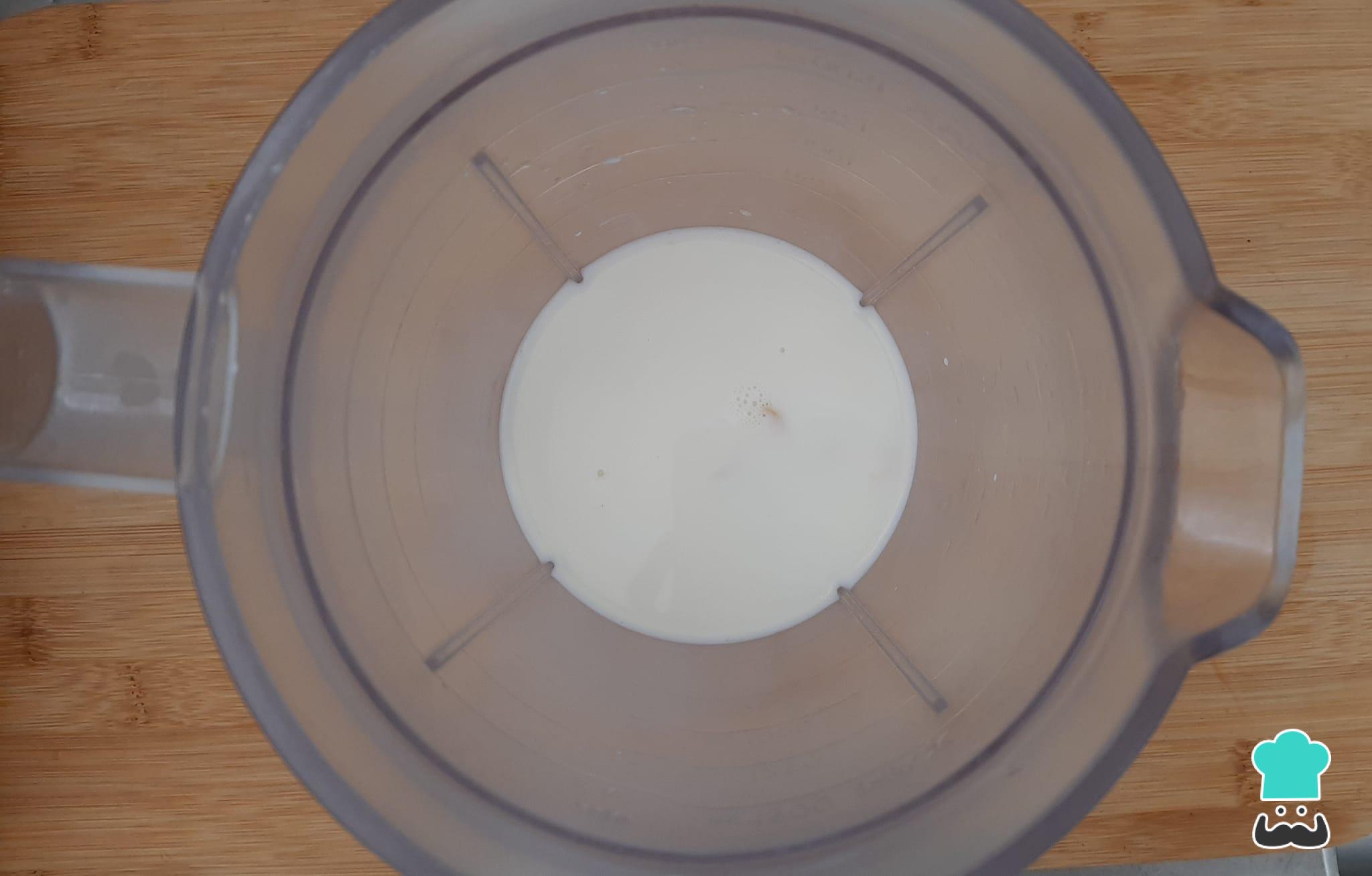 No liquidificador, bata o milho (escorrido) com o leite líquido por alguns minutos ou até ficar homogêneo.