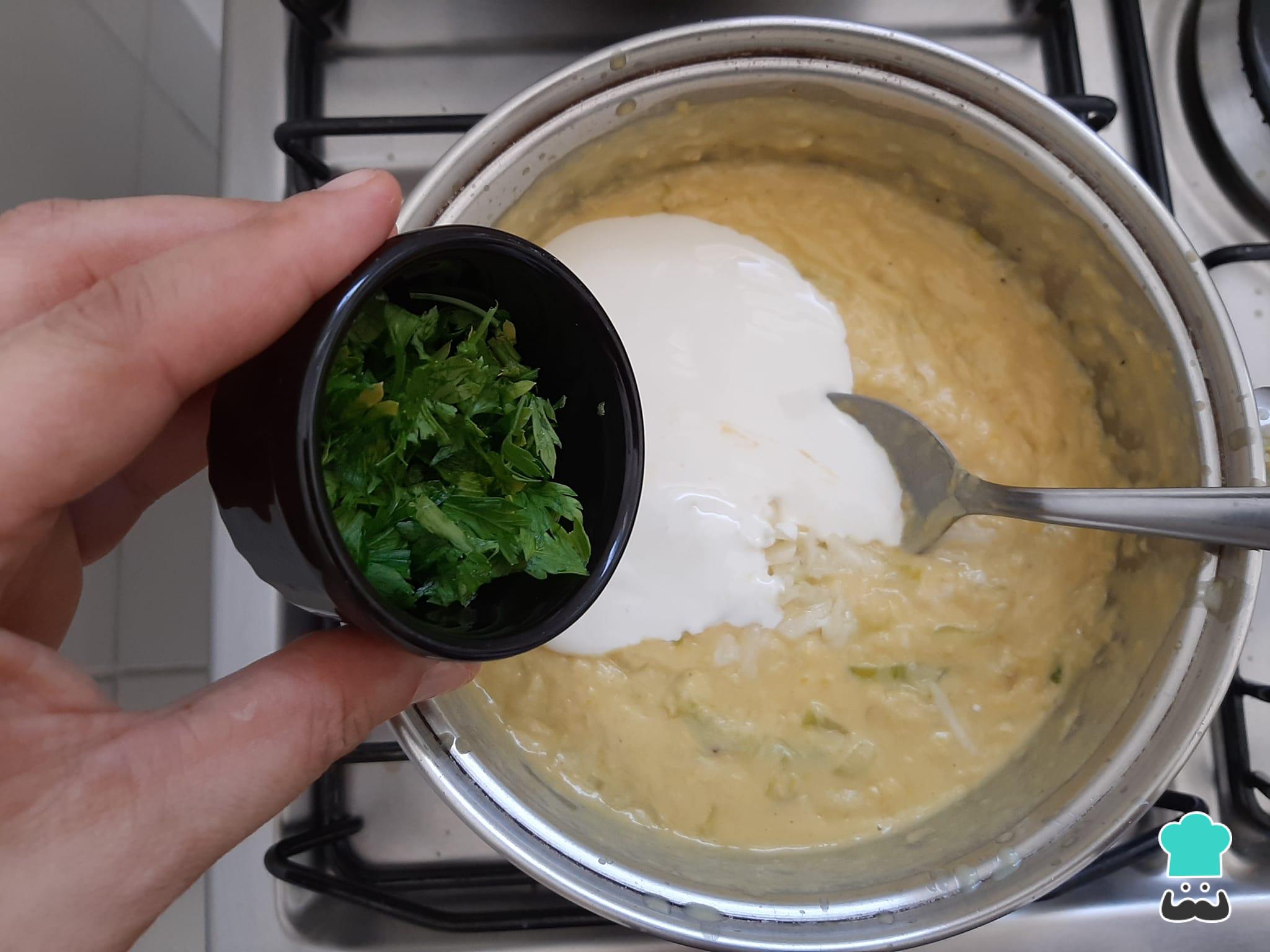 Adicione o creme de leite e a salsinha picada e mexa mais um pouco.