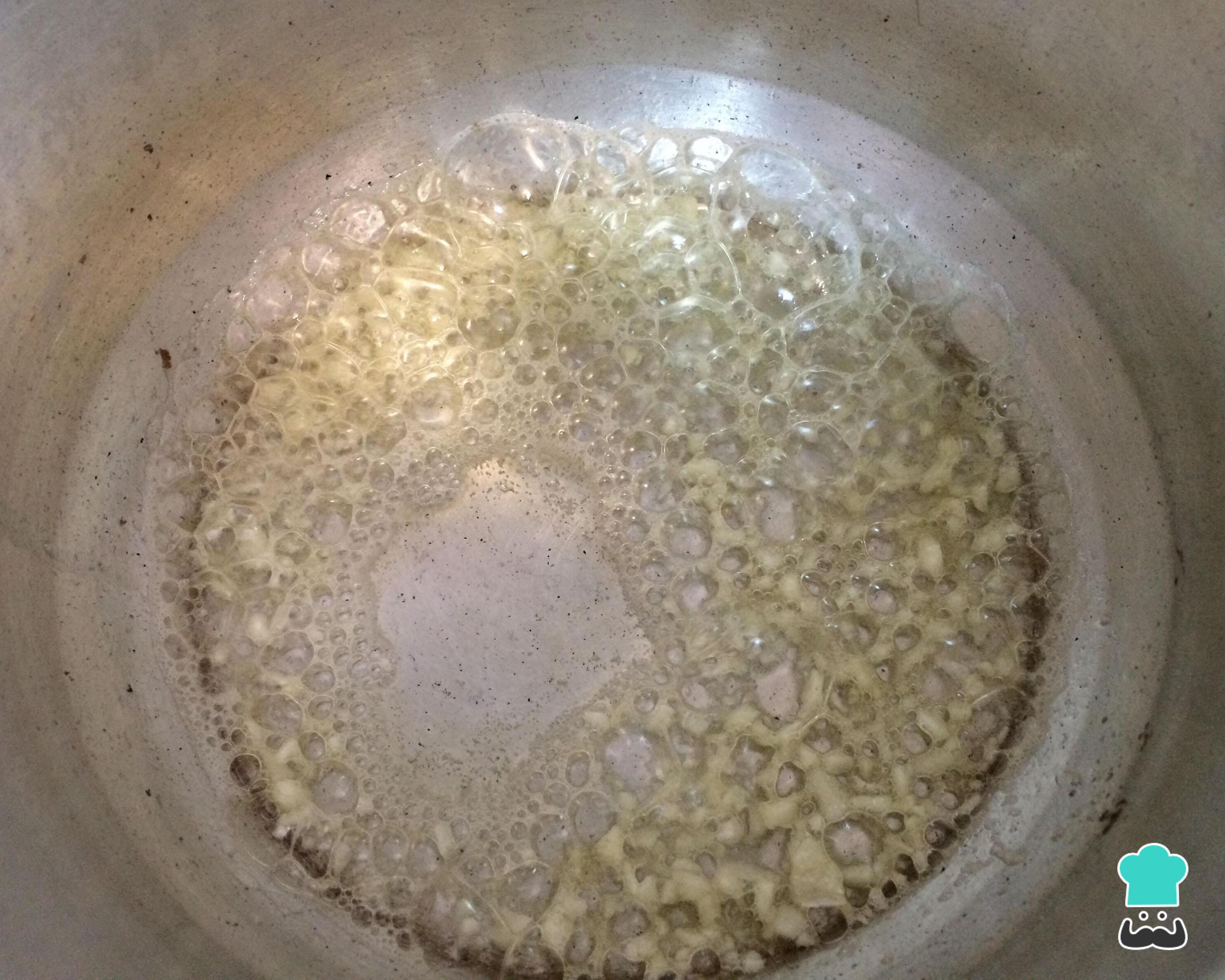 Coloque no fogo baixo uma panela com a manteiga e, quando derreter, adicione o alho picado. Deixe fritar por 1-2 minutos ou até o alho dourar levemente.