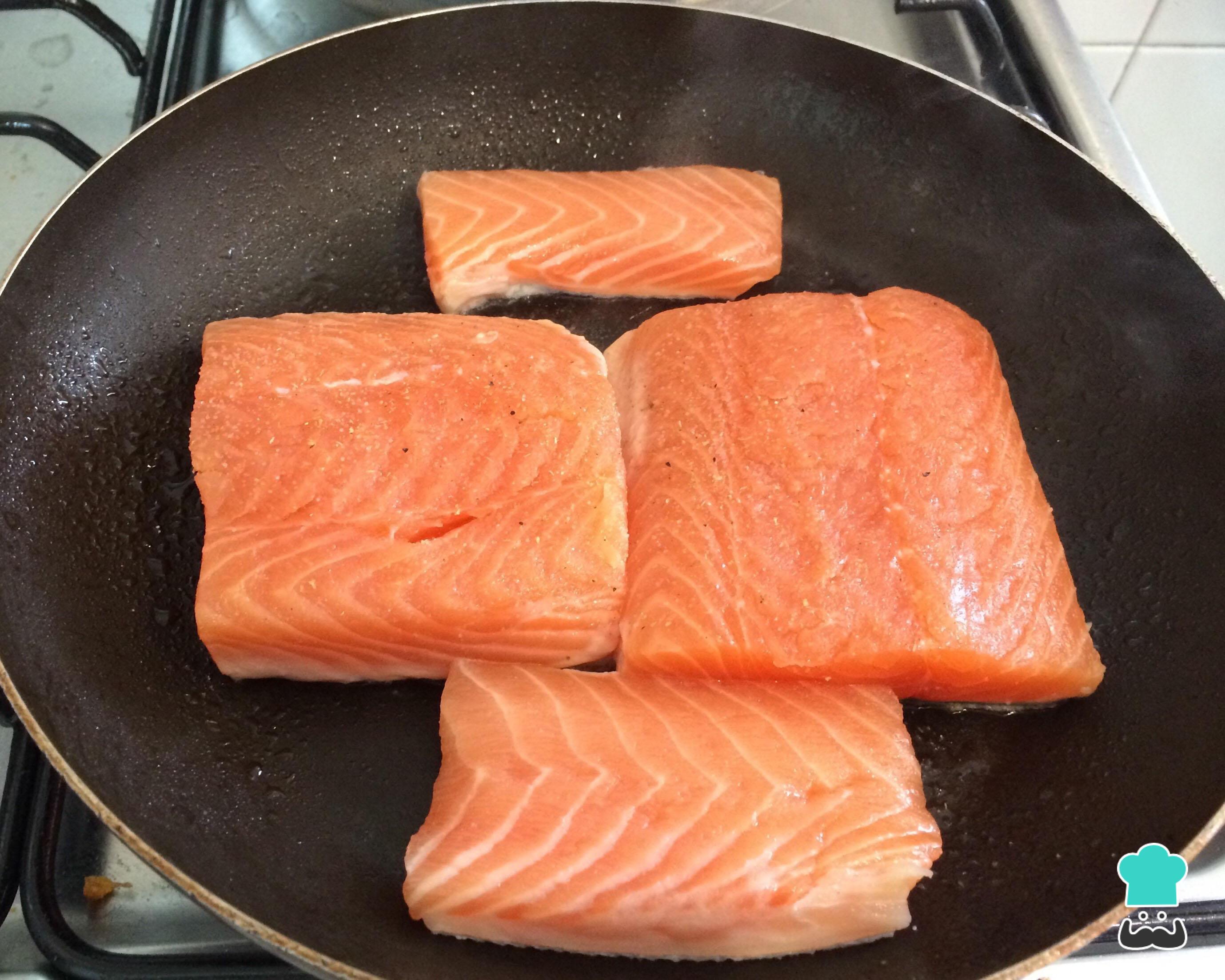 Por fim grelhe o salmão do jeito habitual. Em caso de dúvidas, tempere o peixe com sal e pimenta dos dois lados e grelhe numa frigideira ou grelha levemente untada e por cerca de 4-5 minutos de cada lado.