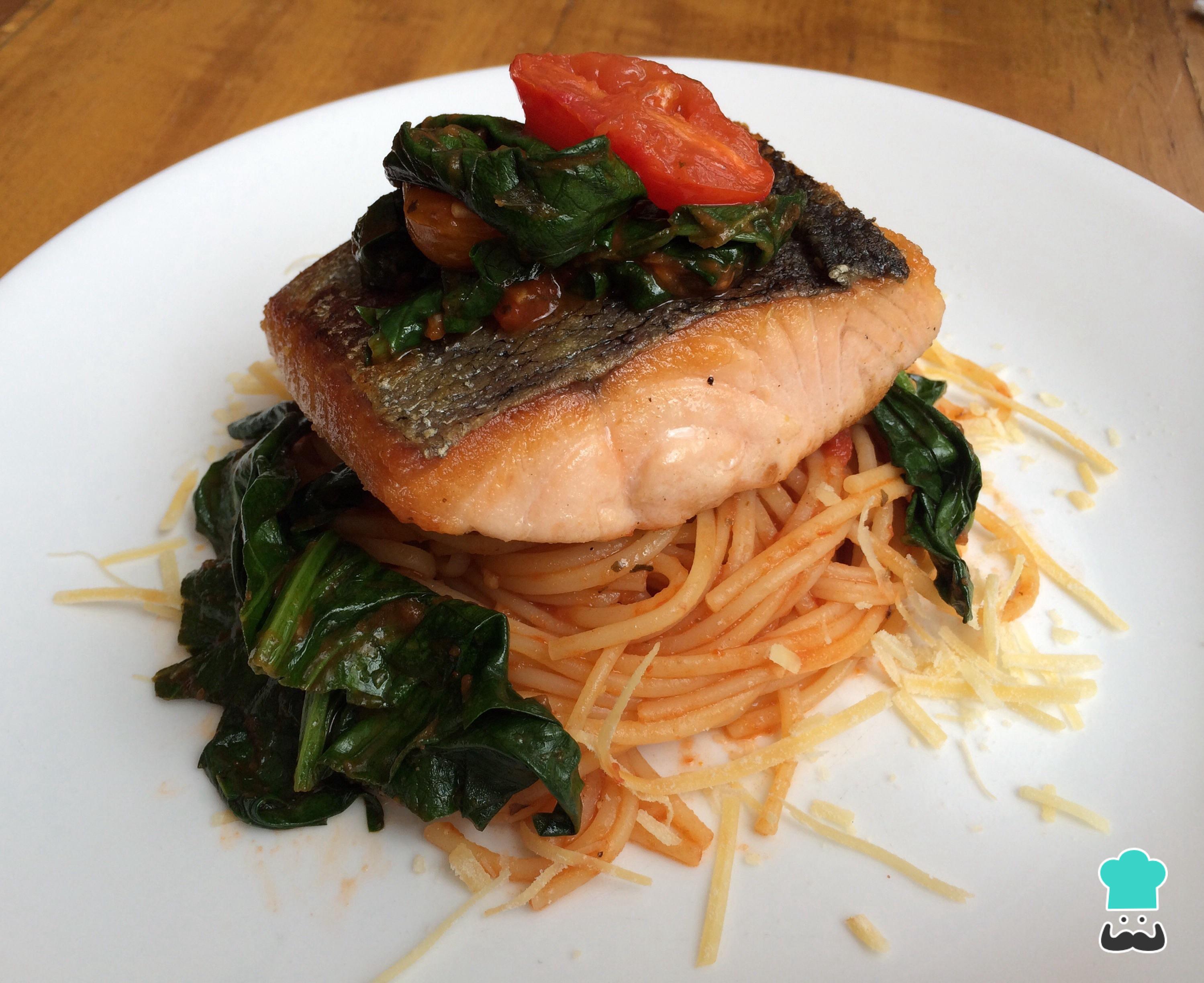 Neste caso nossa sugestão de acompanhamento para salmão grelhado é espaguete e espinafre refogado no molho de tomate. Essa é uma proposta equilibrada porque, no mesmo prato, você tem proteína (salmão), fibra (espaguete) e uma boa porção de legumes (tomate e espinafre). Confira baixo todos os detalhes de preparo e consiga seu acompanhamento para salmão em menos de 30 minutos!