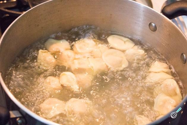 Comece preparando esta receita de cappeletti ao molho branco cozinhando o macarrão de acordo com o indicado na embalagem.