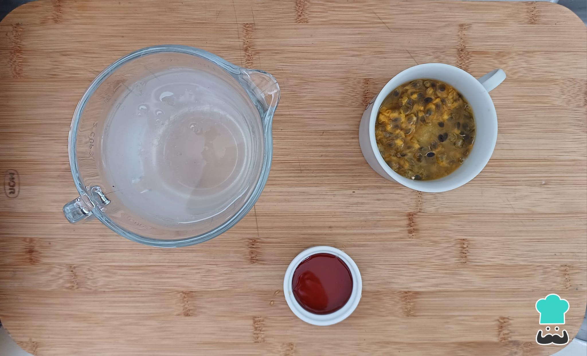Separe os ingredientes necessários para o preparo da agua de coco com maracujá!