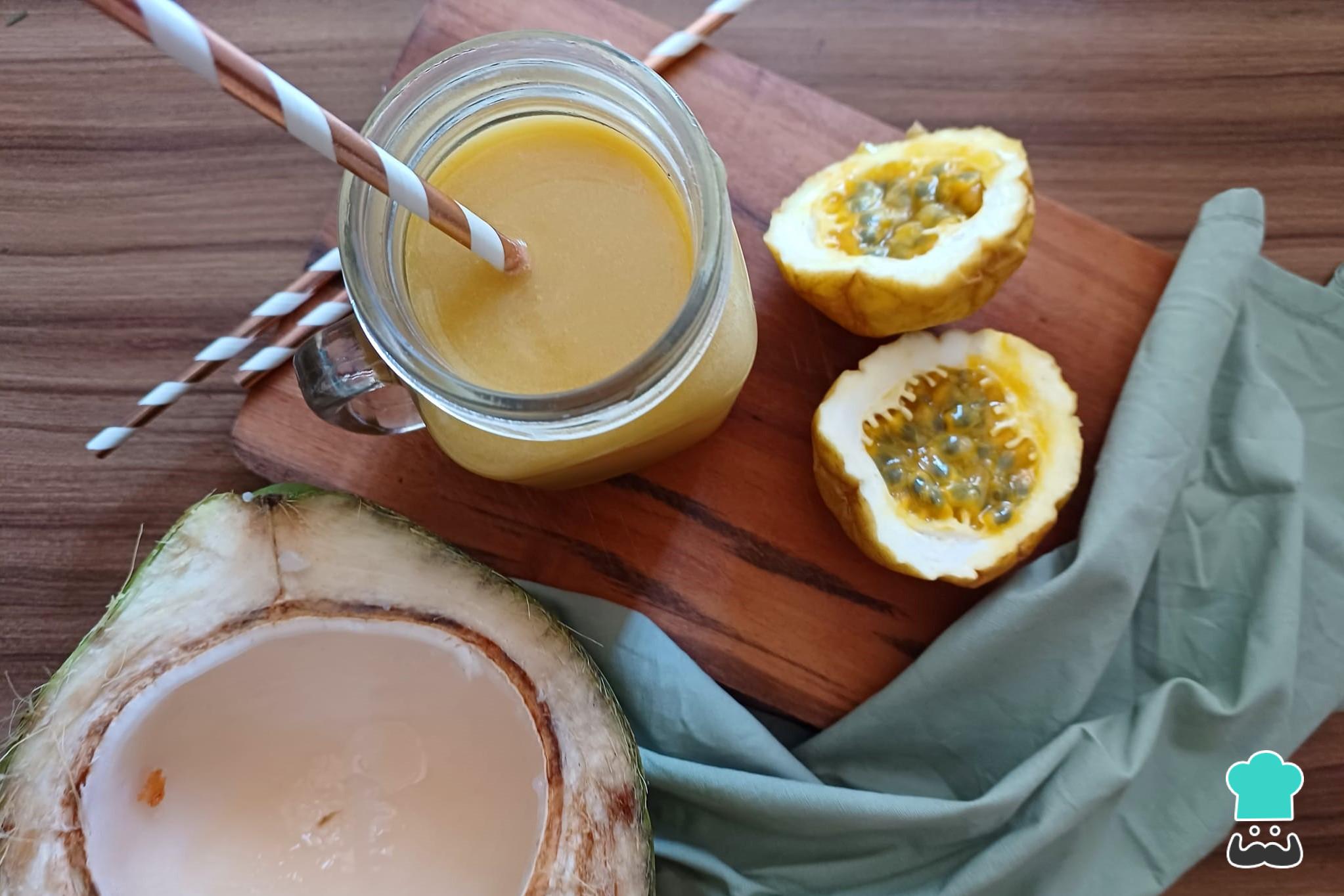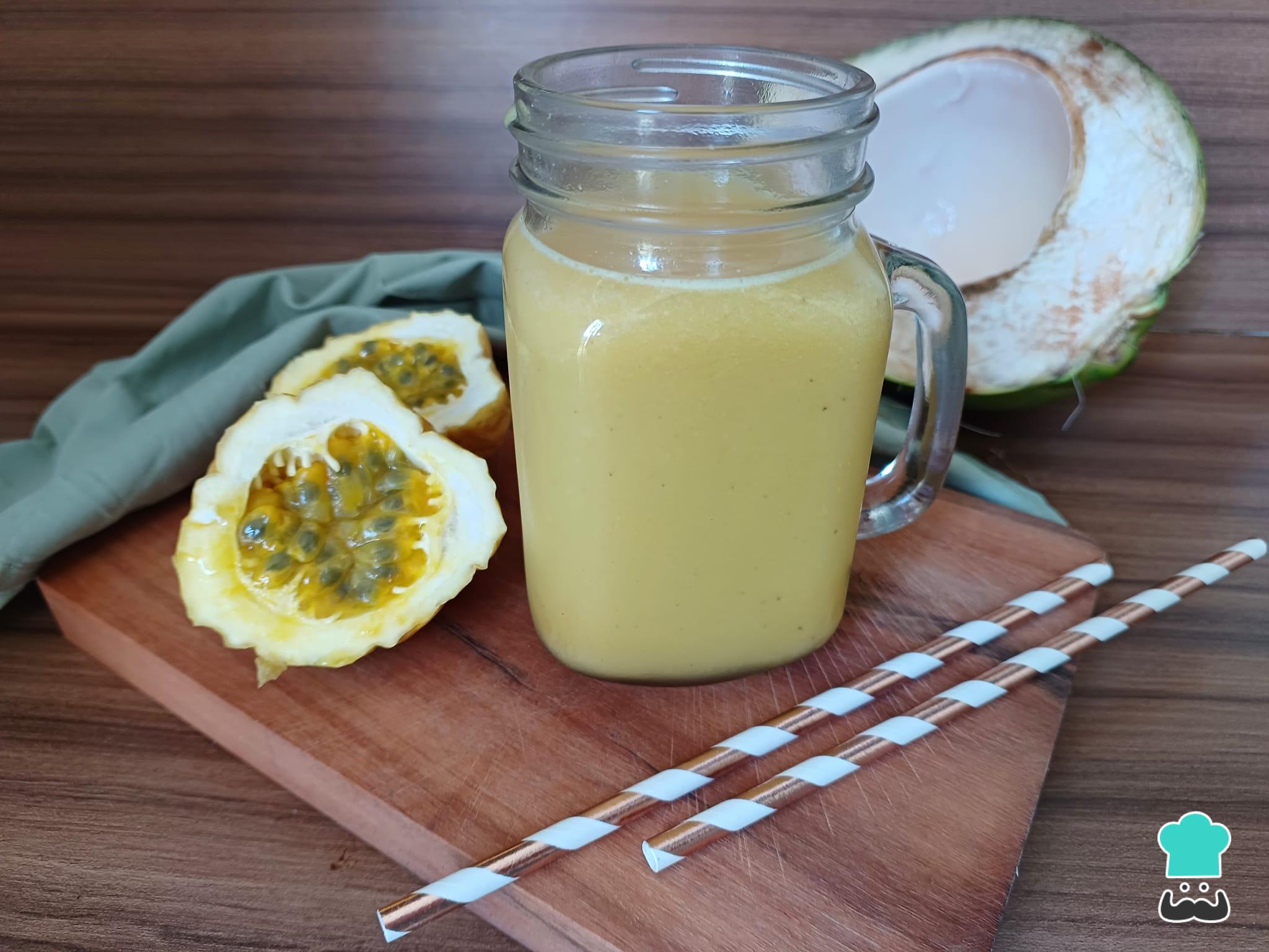 Dica: Se achar que a bebida ficará forte devido ao sabor concentrado do maracujá, acrescente mais água de coco para suavizar.