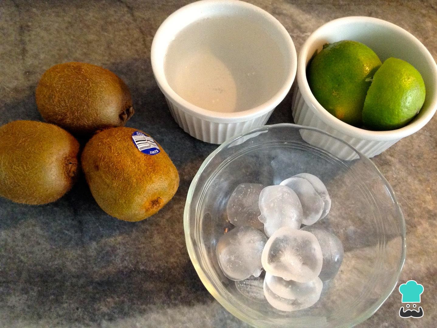 O primeiro passo para fazer água de limão e kiwi é preparar os ingredientes da bebida.