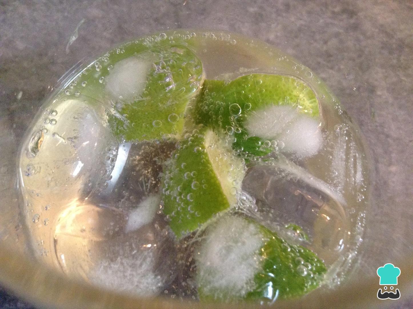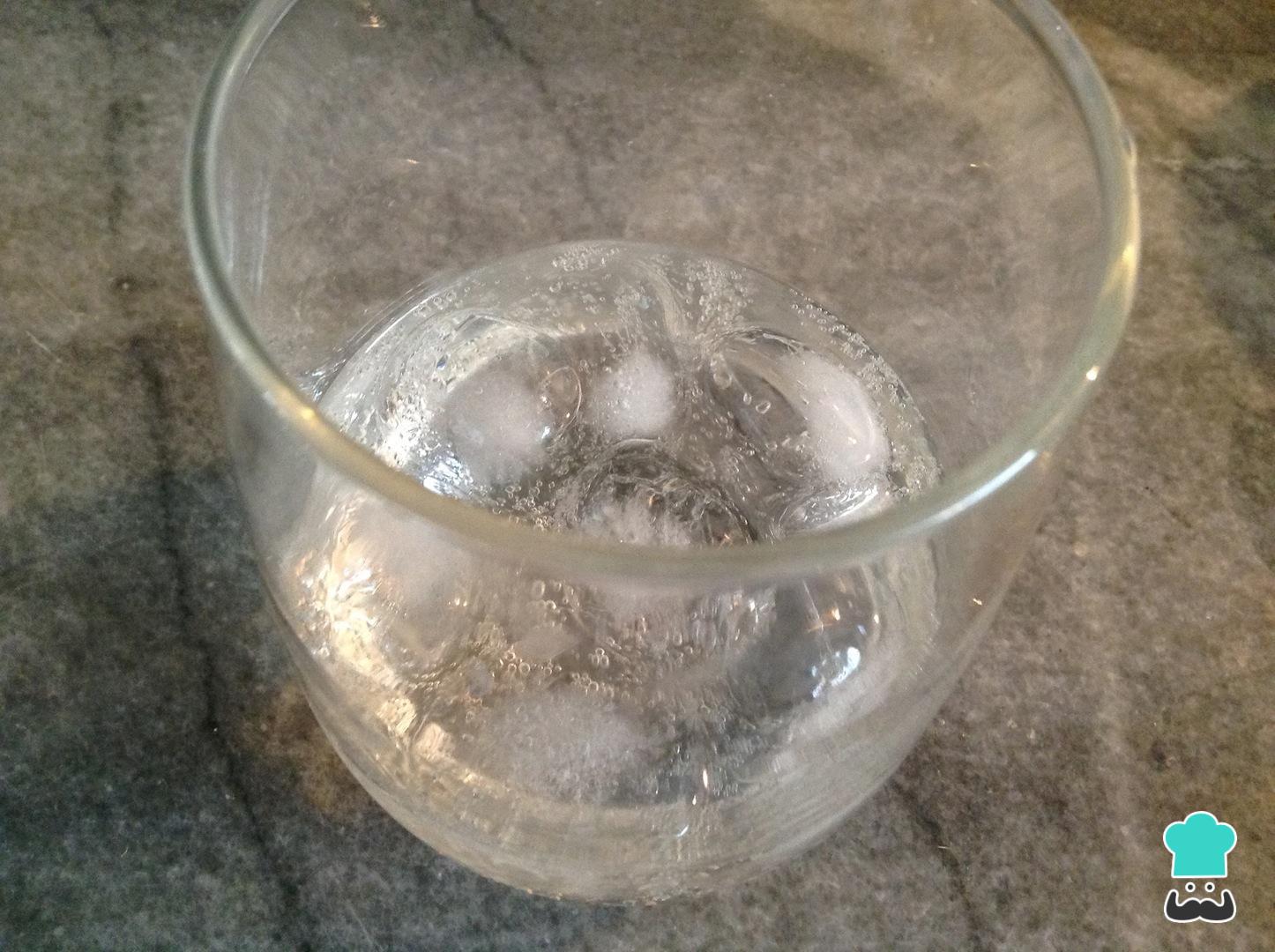 Separadamente, misture o gelo e com o refrigerante ou com a água com gás.