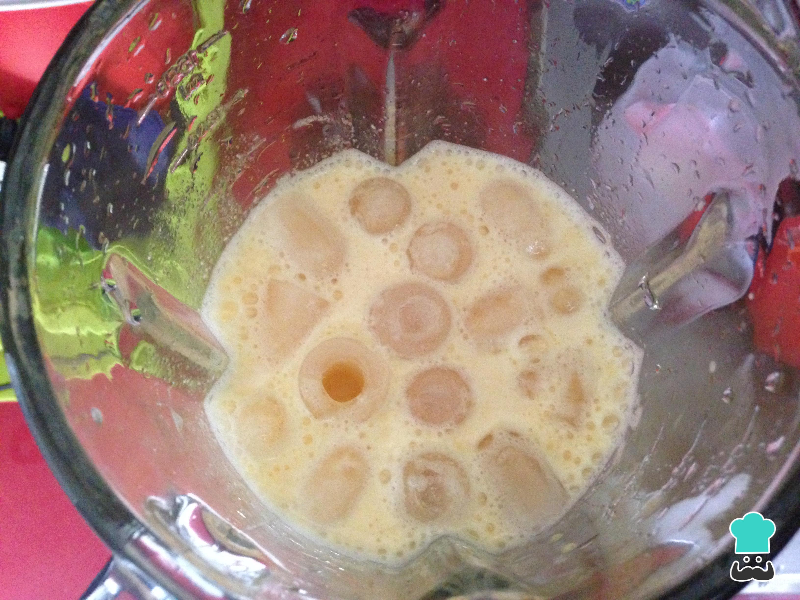 Em um liquidificador, bata uma das xícaras de água com o açúcar até que se dissolva completamente.
