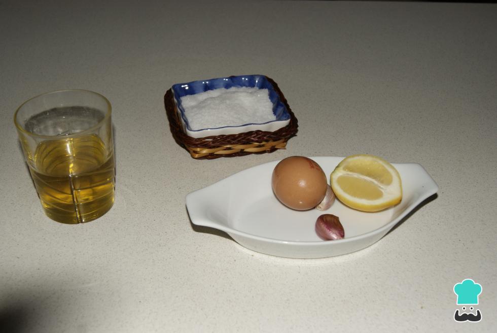 Para fazer esta maionese de alho caseira comece por reunir os ingredientes necessários.