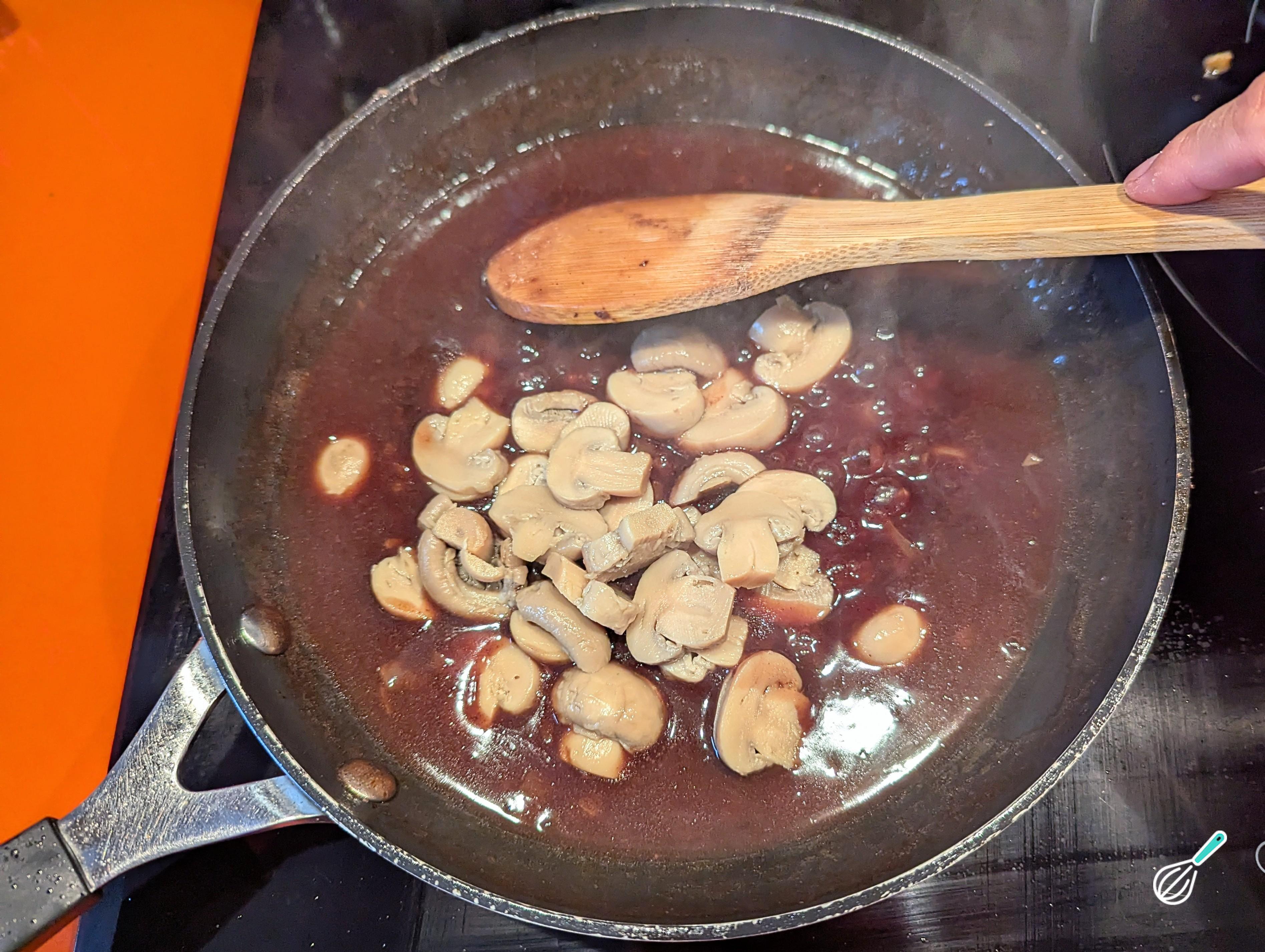 Adicione os champignons fatiados (opcional) e cozinhe em fogo médio até o molho reduzir e engrossar, por cerca de 5 minutos.