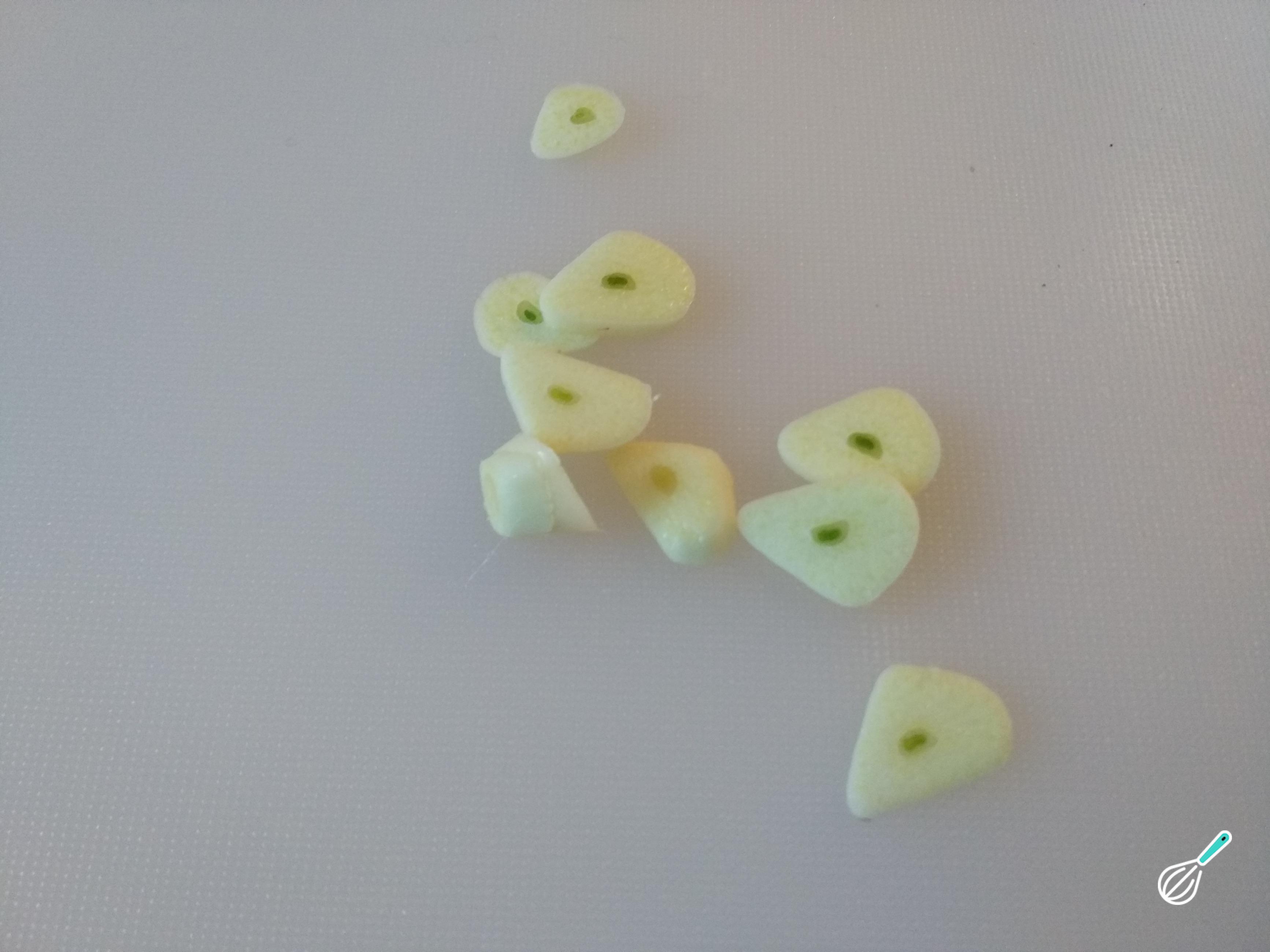 Pique o alho-poró verticalmente, separado-os uns dos outros.