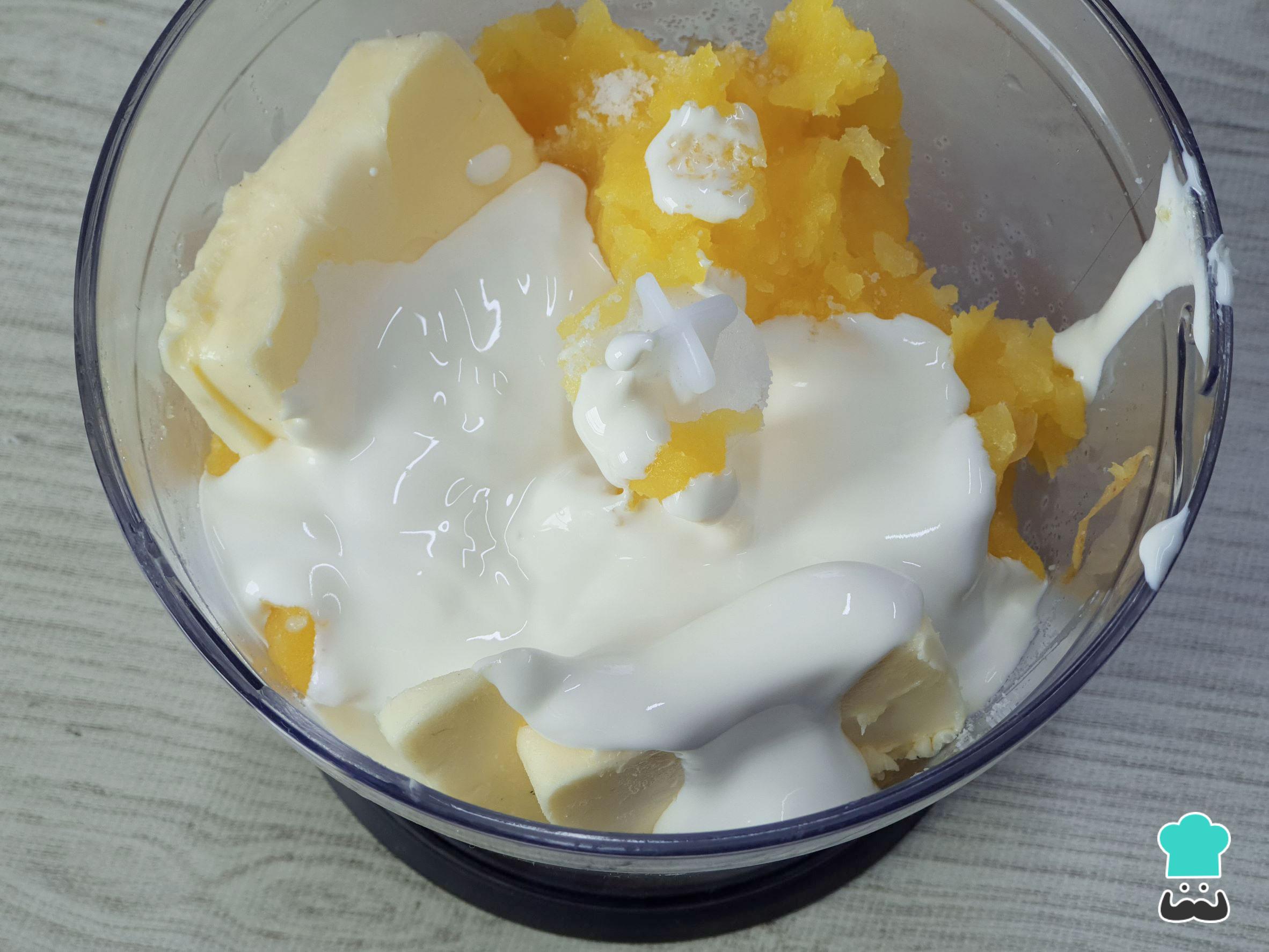 Ao purê ainda quente junte a manteiga e o creme de leite. Bata até misturar bem, pois é importante que o creme esteja perfeitamente liso e uniforme.