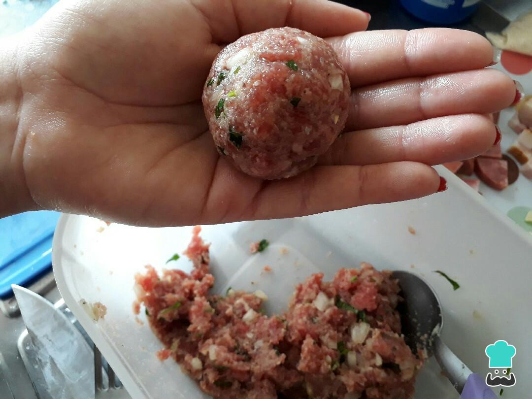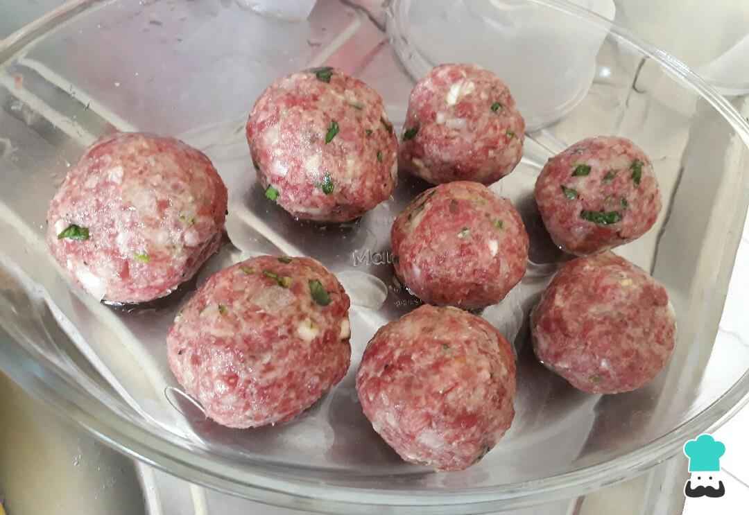 A almôndega de carne deverá ficar redondinha do jeito que mostra a imagem.