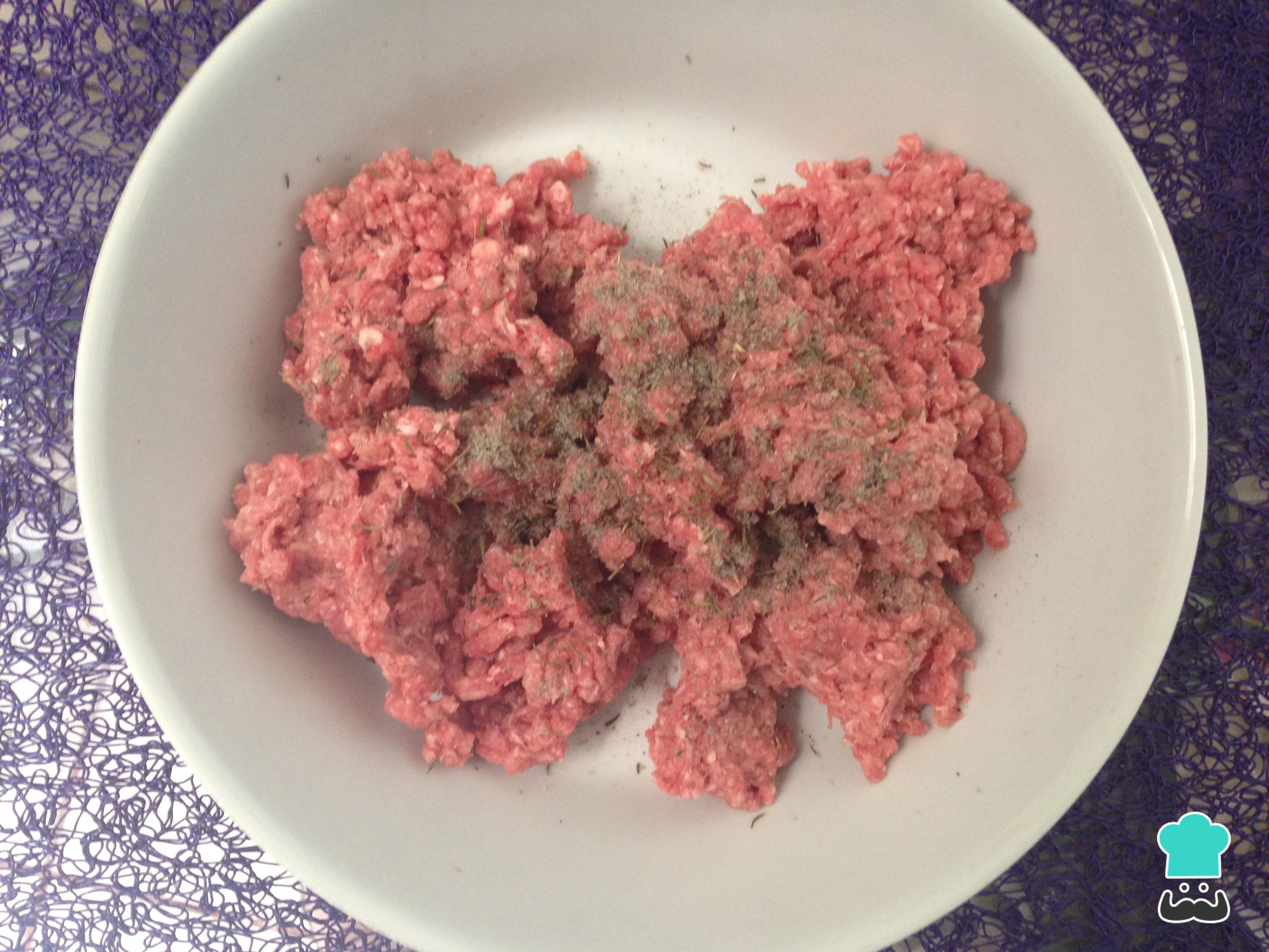 Em uma tigela grande coloque a carne e tempere com tomilho, sal e pimenta.
