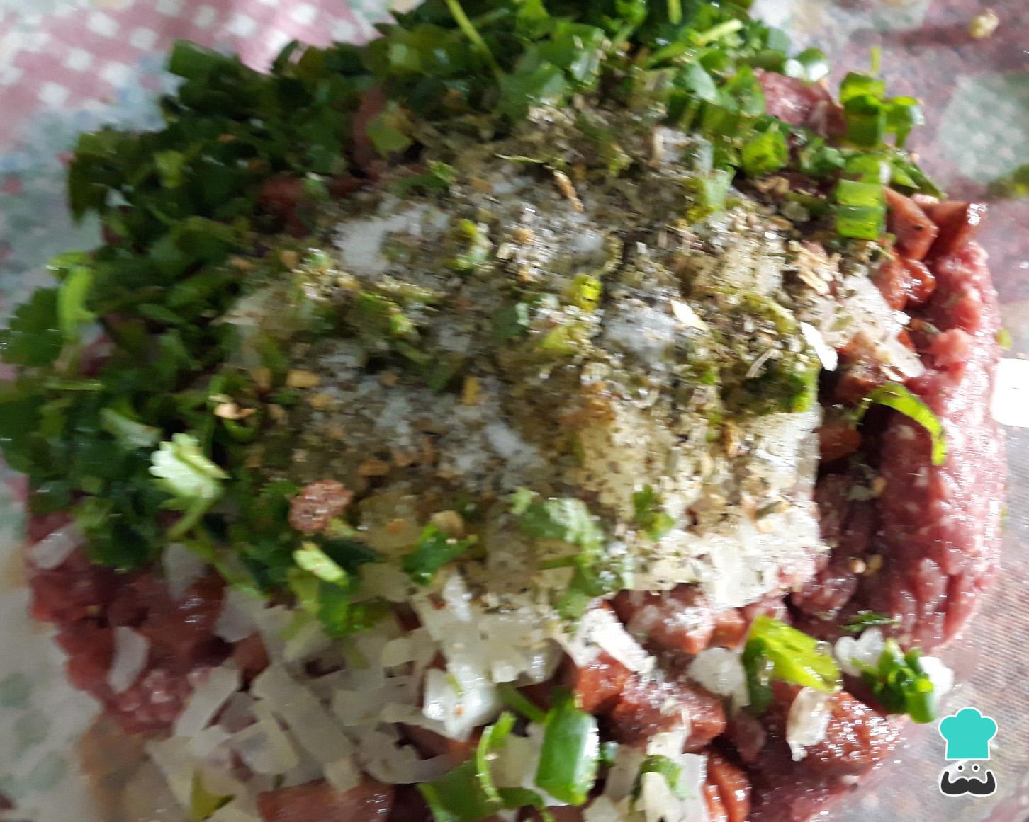 Dica: Neste caso refoguei a cebola antes de misturar com a carne, desse jeito ela fica mais macia e saborosa.