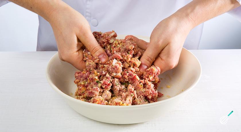 Para fazer almôndegas com pão amanhecido, comece por misturar bem a carne moída com o ovo, o pão, a salsinha, o alho e a cebola. Tempere com sal e pimenta do reino a gosto e deixe descansar por 20 minutos.