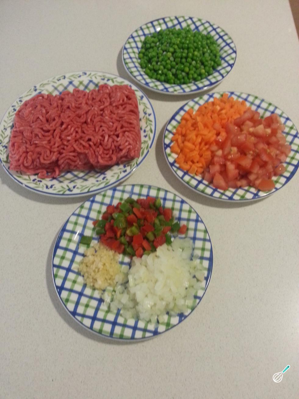 Para fazer almôndegas de carne com legumes, comece por preparar todos os ingredientes.