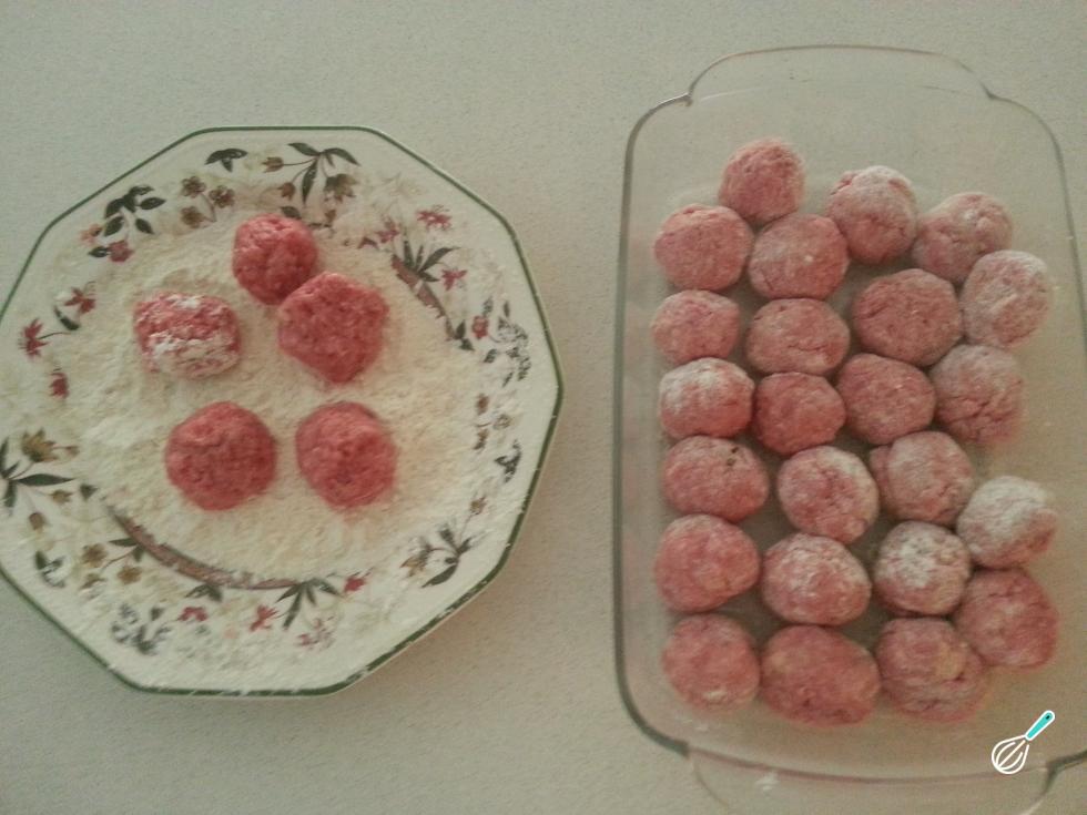 Adicione a carne, misturando bem, e já pode modelar as almôndegas com um formato arredondando, passando-as pela farinha para que não abram durante a fritura.