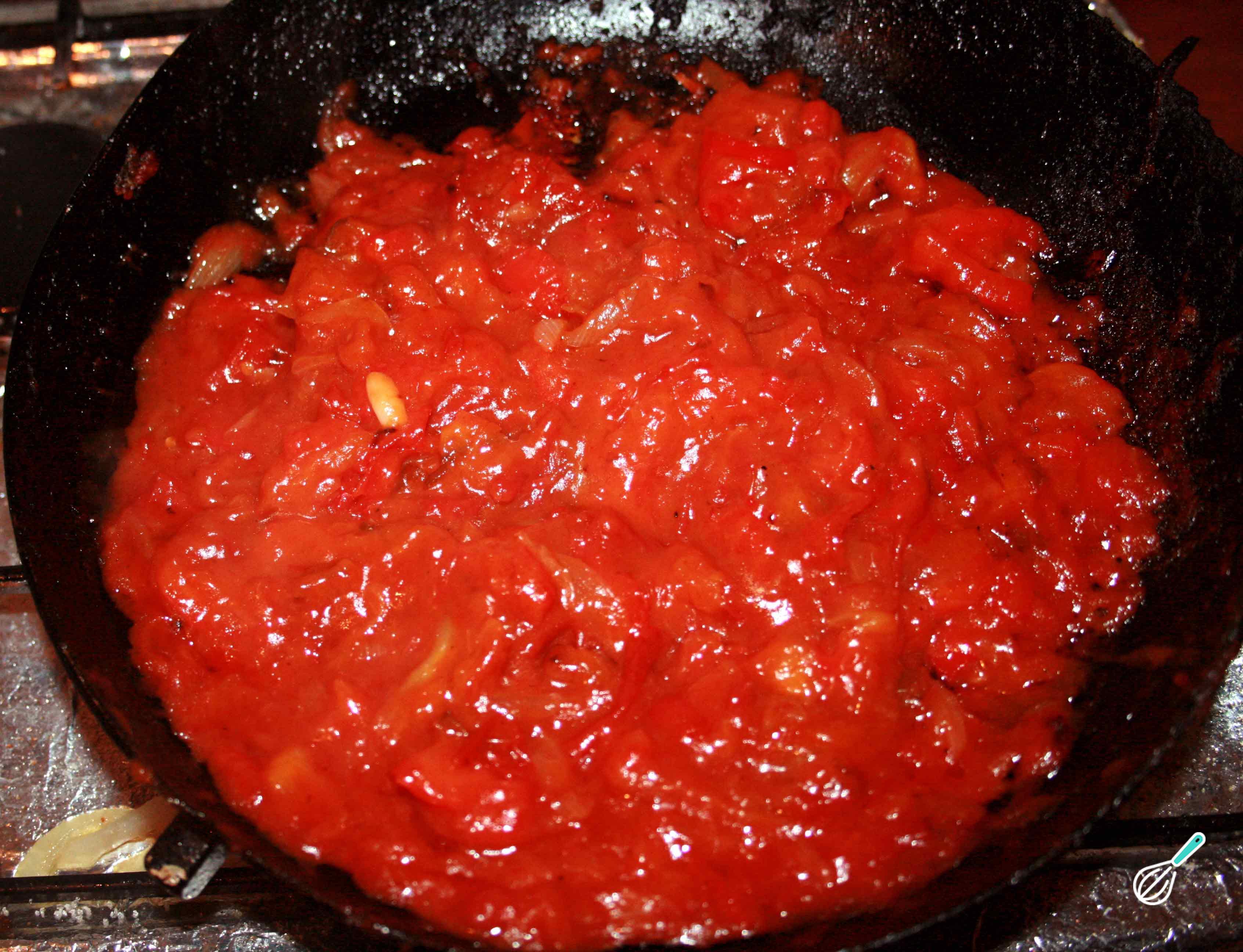 Volte a levar o molho de tomate ao fogo e deixe reduzir em fogo médio.